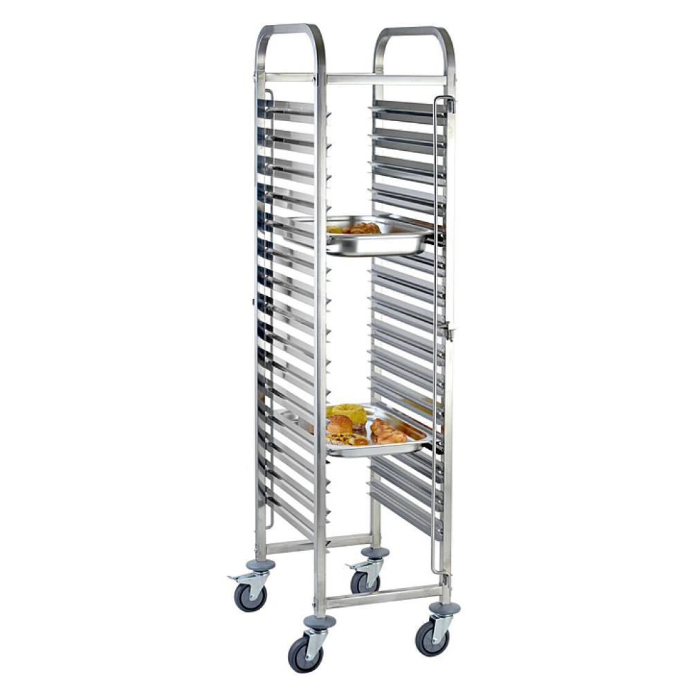 Тележка-шпилька VIATTO RT1115 предназначена для хранения и транспортировки гастроемкостей GN 1/1 на предприятиях общественного питания и торговли. Корпус выполнен из нержавеющей стали.