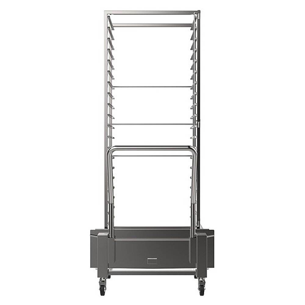 Вкатная тележка-шпилька Tecnoeka EKCR 20 TC используется совместно c пароконвектоматами MKF 2011 S, MKF 2011 TS, MKF 2011 BM, EKF 2011 TC и EKF 2011 UD на предприятиях общественного питания и торговли для перемещения продуктов, кухонной утвари, посуды и прочих предметов. Модель оснащена съемной эргономичной рукояткой и колесами с тормозами.