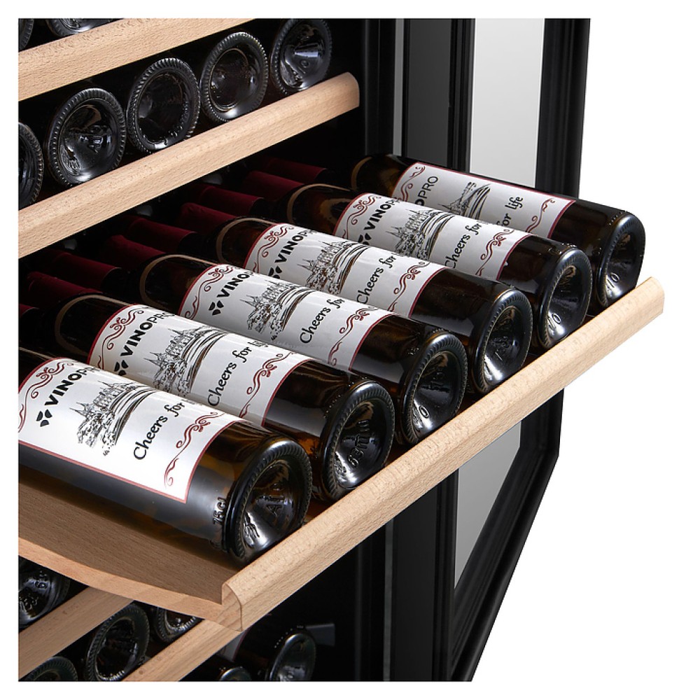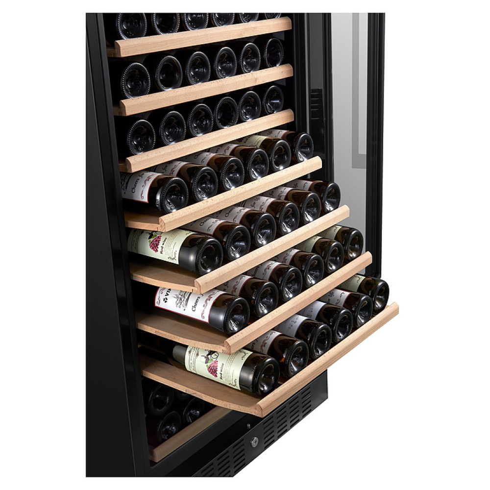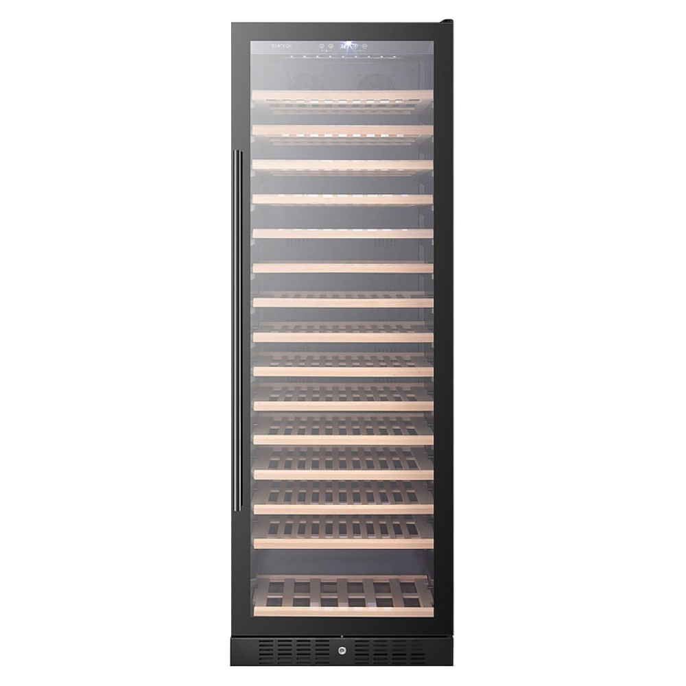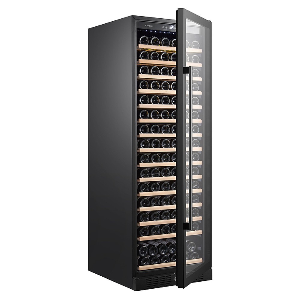 Винный шкаф Temptech Classique CL180SB предназначен для охлаждения, хранения и демонстрации бутилированного вина в отелях, винных магазинах, на предприятиях общественного питания и торговли. Модель оснащена сенсорной панелью с цифровым дисплеем, 15 выдвижными полками, дверью с замком и белой светодиодной подсветкой. Дверца выполнена из двухслойного стекла с УФ-фильтром, передняя панель - из черного стекла, полки - из натурального бука без обработки химикатами.