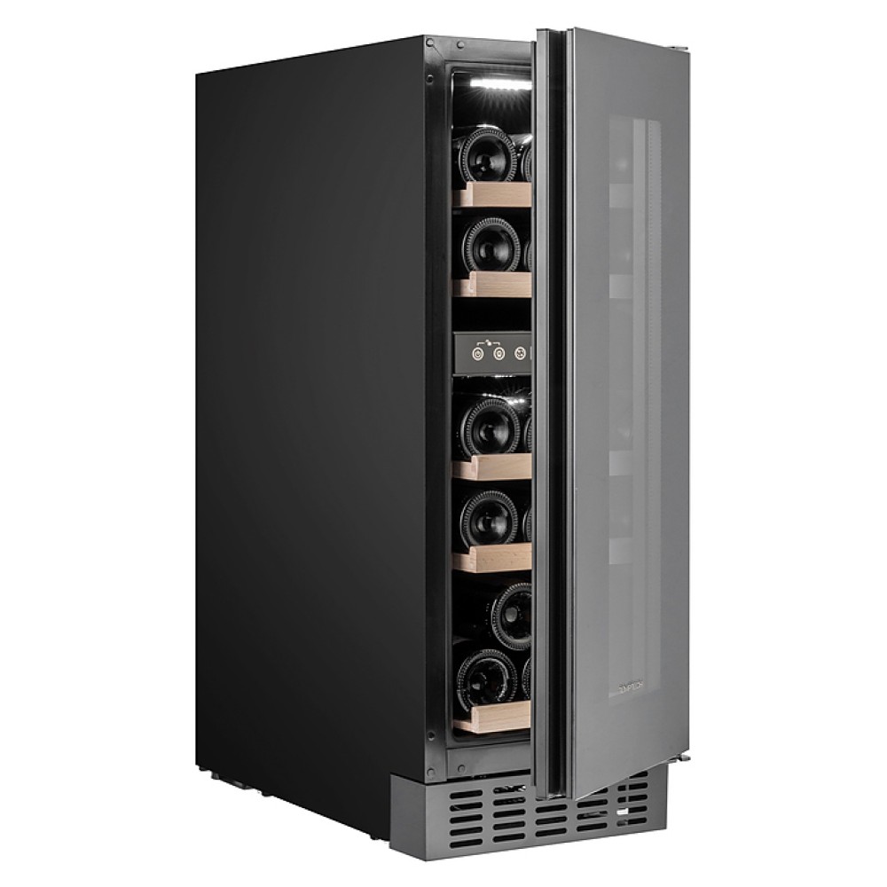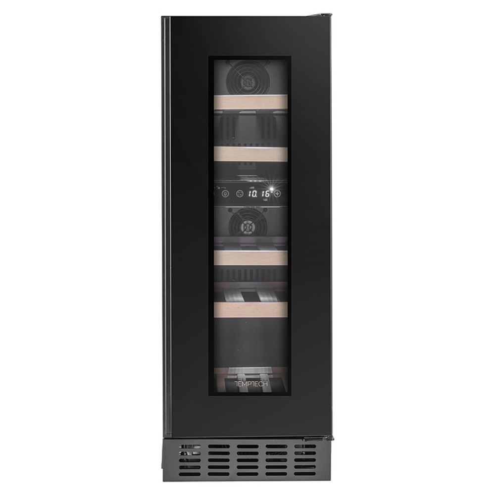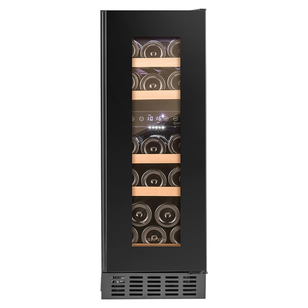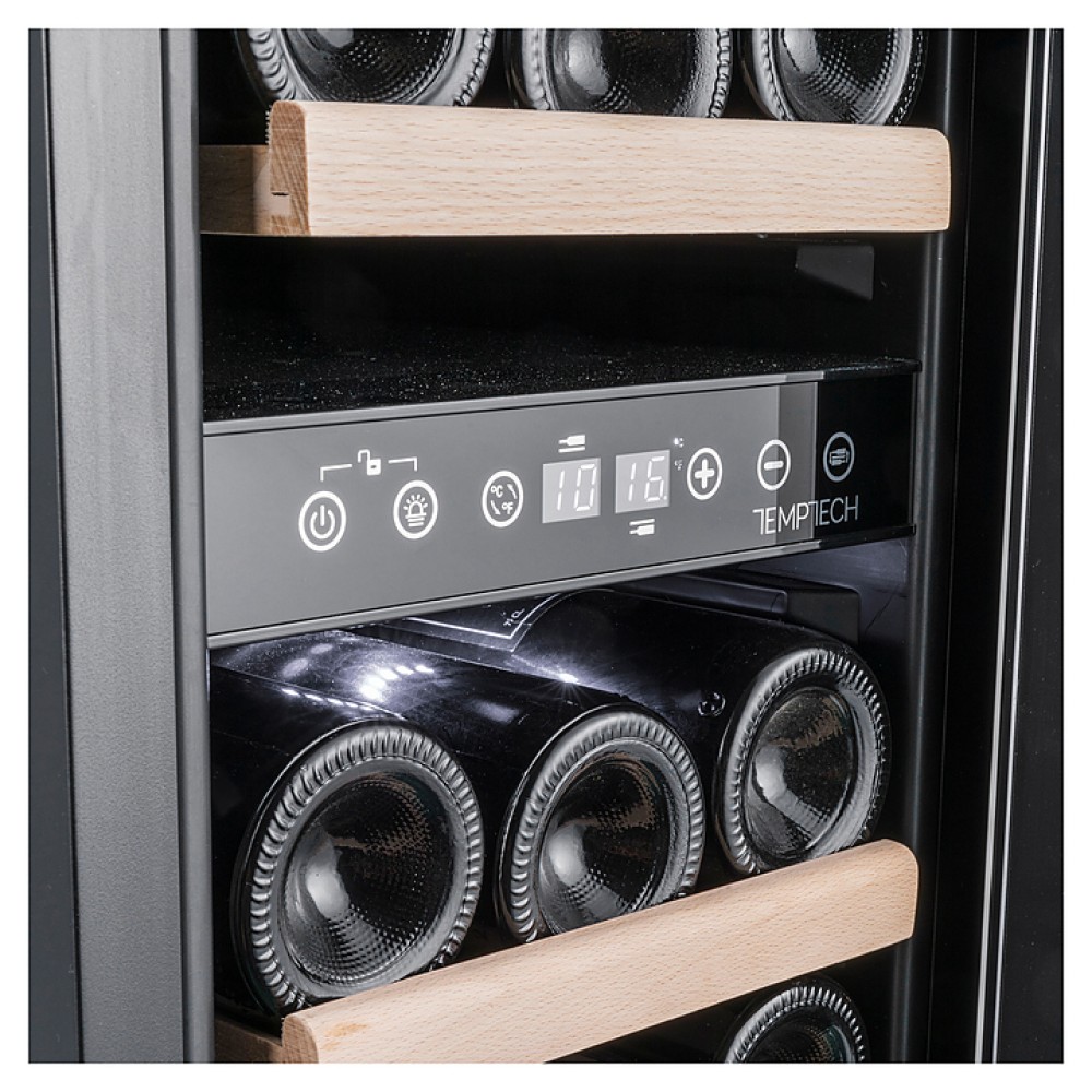 Винный шкаф Temptech Oslo OX30DRB предназначен для охлаждения, хранения и демонстрации бутилированного вина в отелях, винных магазинах, на предприятиях общественного питания и торговли. Модель оснащена сенсорной панелью с дисплеем для регулировки температуры и освещения, 5 полками, дверцей со встроенной ручкой и белой светодиодной подсветкой. Дверца выполнена из двухслойного стекла, заполненного аргоном, и с защитой от УФ-лучей, передняя панель - из черного стекла, полки - из бука.