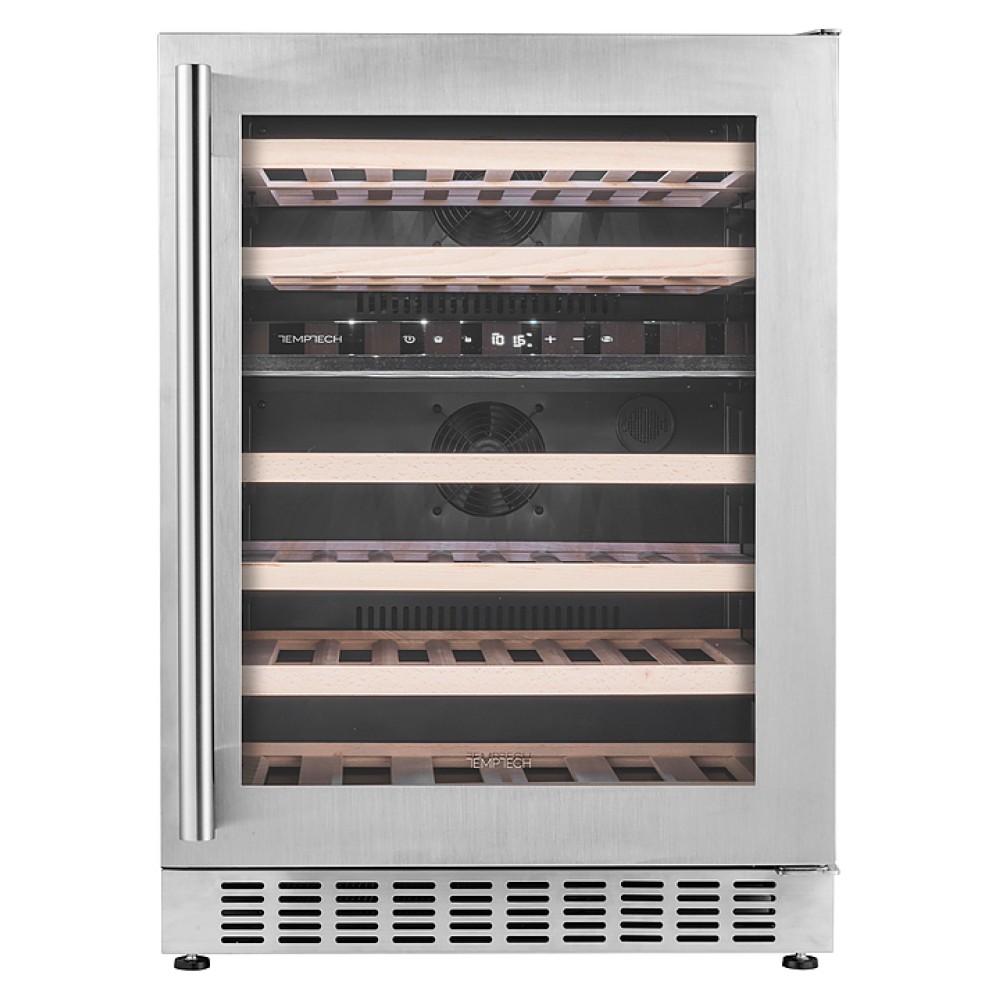 Винный шкаф Temptech Oslo OX60DX предназначен для охлаждения, хранения и демонстрации бутилированного вина в отелях, винных магазинах, на предприятиях общественного питания и торговли. Модель оснащена сенсорной панелью с дисплеем для регулировки температуры и освещения, 6 полками, фильтром с активированным углем и белой светодиодной подсветкой. Дверца выполнена из двухслойного стекла, заполненного аргоном, и с защитой от УФ-лучей, передняя панель - из нержавеющей стали, полки - из бука.