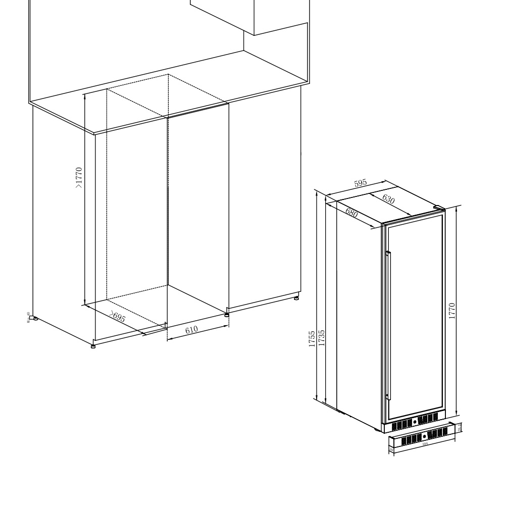 | Высота1770 мм | Глубина680 мм | Ширина595 мм |