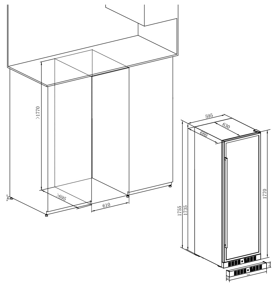 | Высота1770 мм | Глубина680 мм | Ширина595 мм |