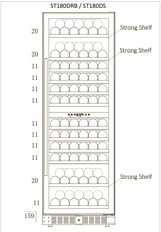 | Вес (без упаковки)100 кг | Вместимость159 бут. | ВстраиваемыйДа |