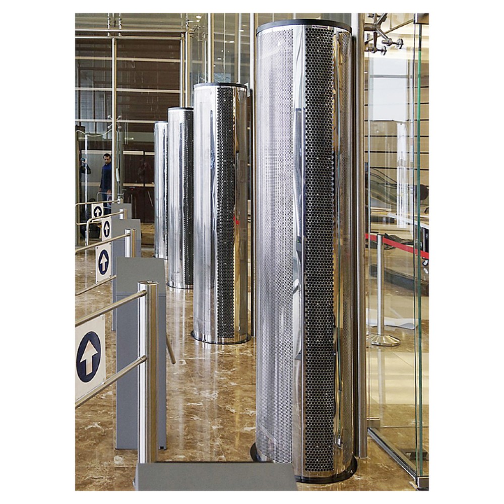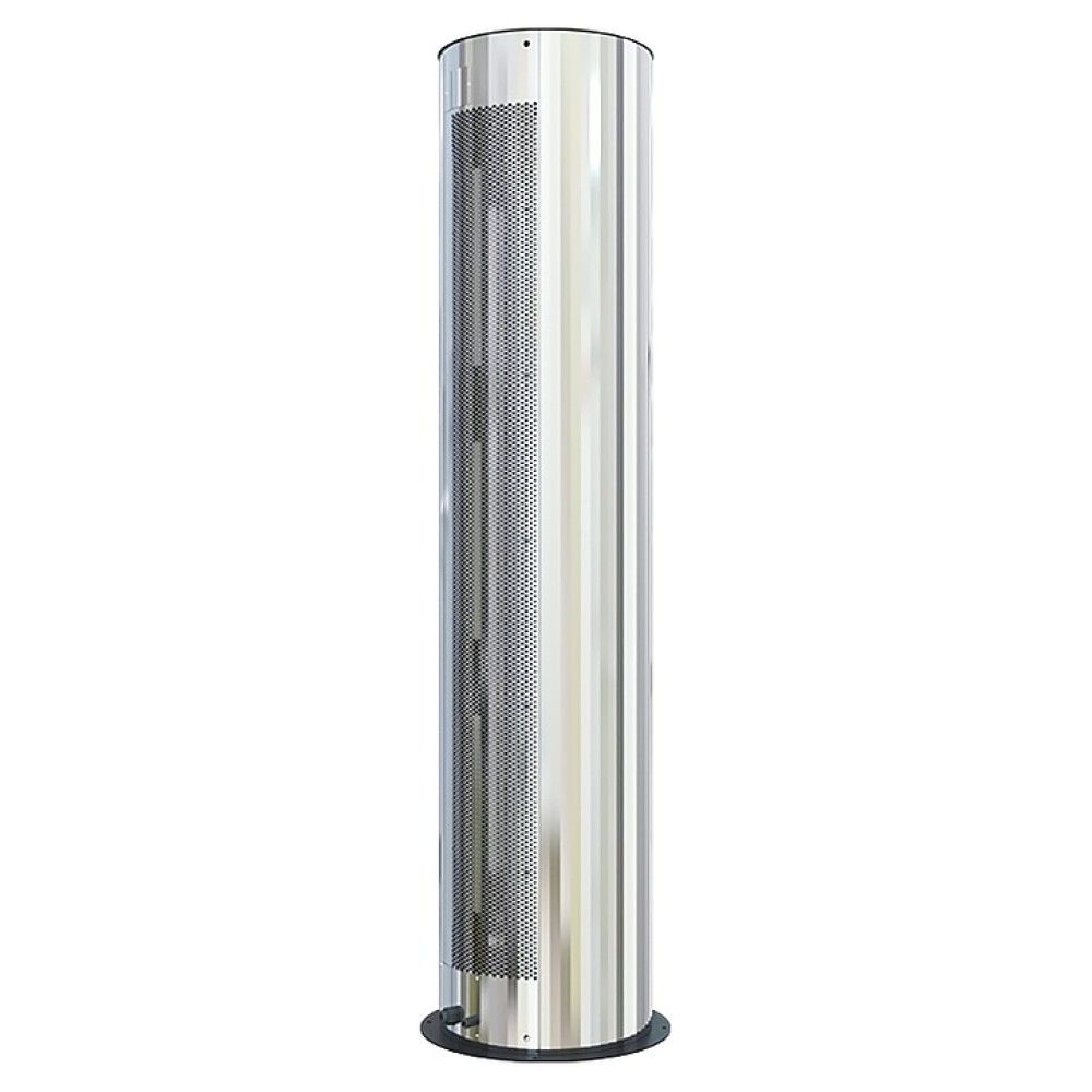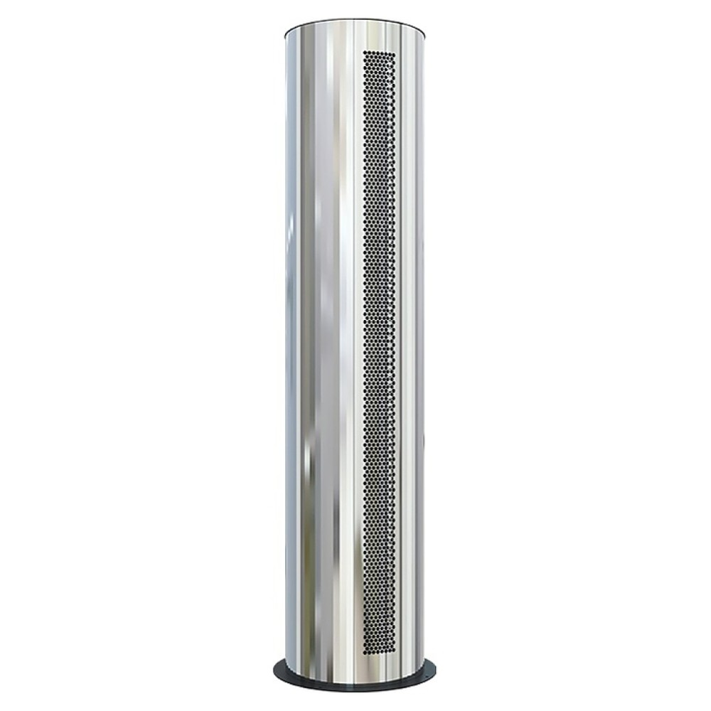 Воздушная завеса Тепломаш КЭВ-115П6145W серии 600 Колонна Бриллиант предназначена для защиты от внешнего притока холодного или теплого воздуха, пыли, насекомых и неприятных запахов путем установки в дверных проемах жилых, торговых и административных помещений, гостиниц, медицинских и общеобразовательных учреждений. Модель оснащена 2 блоками диаметральных (тангенциальных) вентиляторов с электродвигателем, водяным теплообменником, воздухозаборной и воздуховыпускной решетками и круглым основанием с монтажными отверстиями. Корпус цилиндрической формы выполнен из нержавеющей стали глянцевой серебристой поверхностью и декоративными гранями, теплообменник – из медных трубок и алюминиевых ламелей, корпус пульта и контактная панель – из ударопрочного белого пластика.