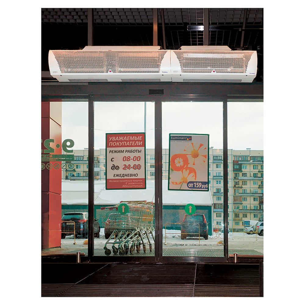 Воздушная завеса Тепломаш КЭВ-18П4034E серии 400 Комфорт Плюс предназначена для защиты от внешнего притока холодного или теплого воздуха, пыли, насекомых и неприятных запахов путем установки в дверных проемах жилых, торговых и административных помещений, гостиниц, медицинских и общеобразовательных учреждений. Модель оснащена 3 блоками диаметральных (тангенциальных) вентиляторов с электродвигателем, воздухозаборной и воздуховыпускной решетками. Корпус выполнен из оцинкованной стали с антикоррозийным покрытием порошковой краской светло-серого оттенка (RAL 7004), фронтальная панель корпуса белого цвета (RAL 9003) с мелкоячеистой перфорацией, корпусы пульта и выносной панели – из ударопрочного белого пластика.
