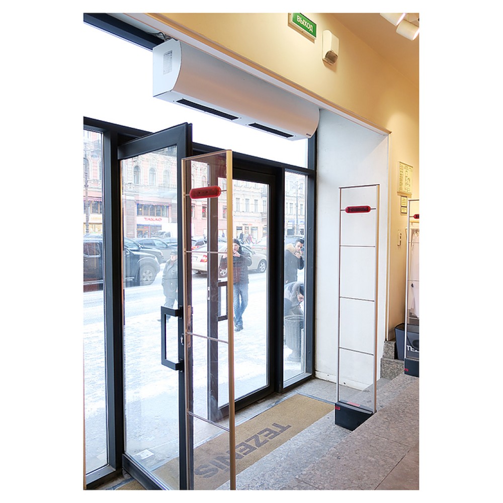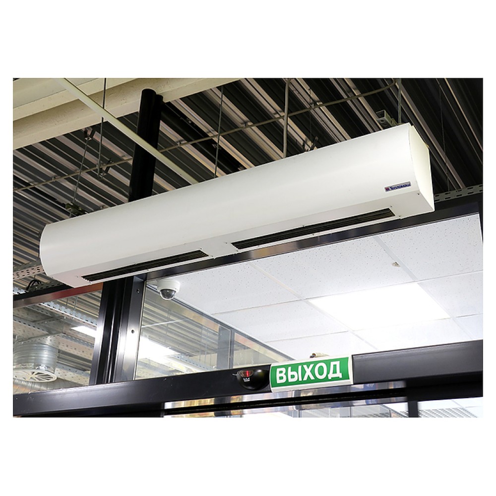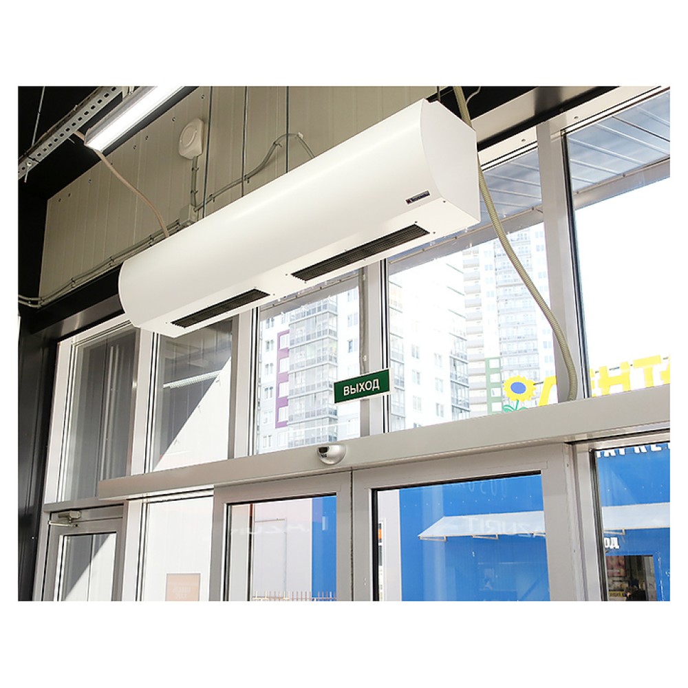 Воздушная завеса Тепломаш КЭВ-12П4042E серии 400 Оптима предназначена для защиты от внешнего притока холодного или теплого воздуха, пыли, насекомых и неприятных запахов путем установки в дверных проемах жилых, торговых и административных помещений, гостиниц, медицинских и общеобразовательных учреждений. Модель оснащена 2 блоками диаметральных (тангенциальных) вентиляторов с электродвигателем, воздухозаборной и воздуховыпускными решетками. Корпус прибора выполнен из оцинкованной стали с антикоррозийным покрытием порошковой краской белого цвета (RAL 9003), корпусы пульта и выносной панели – из ударопрочного белого пластикаа.