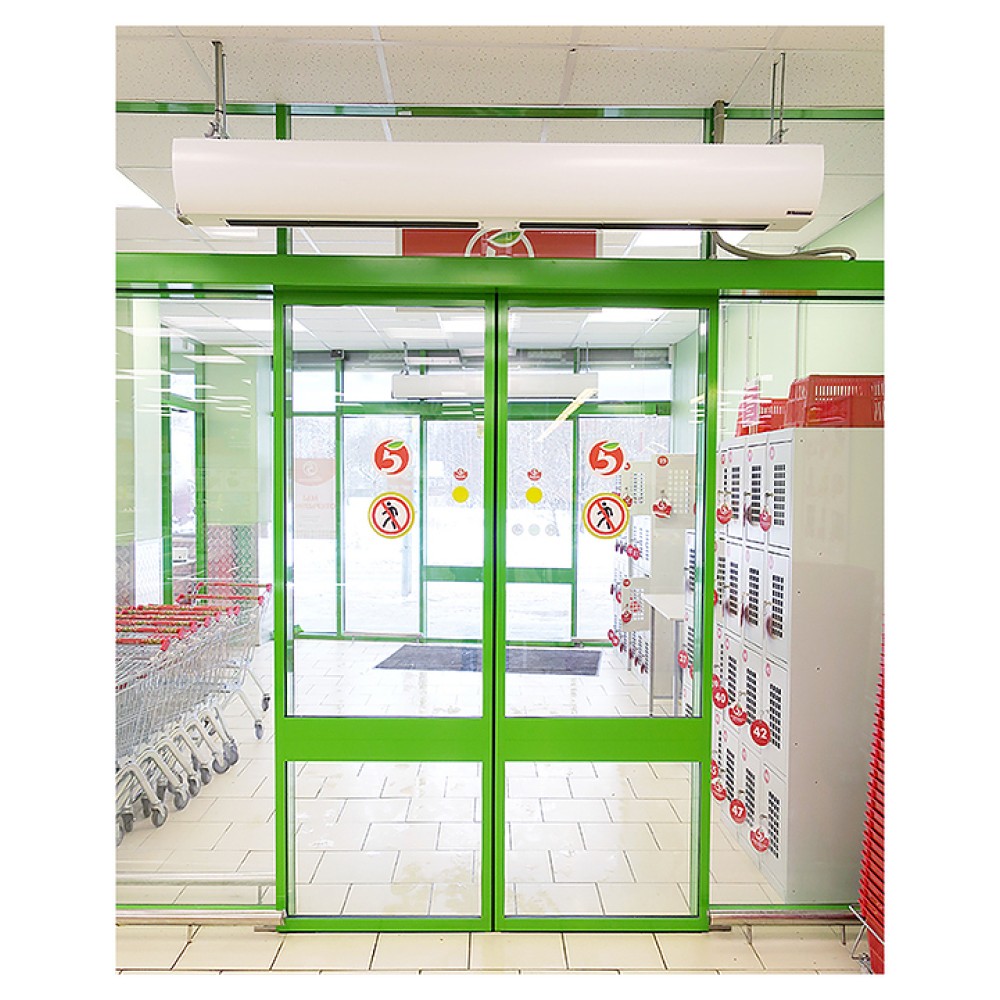Воздушная завеса Тепломаш КЭВ-18П3042E серии 300 Оптима предназначена для защиты от внешнего притока холодного или теплого воздуха, пыли, насекомых и неприятных запахов путем установки в дверных проемах жилых, торговых и административных помещений, гостиниц, медицинских и общеобразовательных учреждений. Модель оснащена 2 блоками диаметральных (тангенциальных) вентиляторов с электродвигателем, воздухозаборной и воздуховыпускными решетками. Корпус прибора выполнен из оцинкованной стали с антикоррозийным покрытием порошковой краской белого цвета (RAL 9003), корпусы пульта и выносной панели – из ударопрочного белого пластикаа.