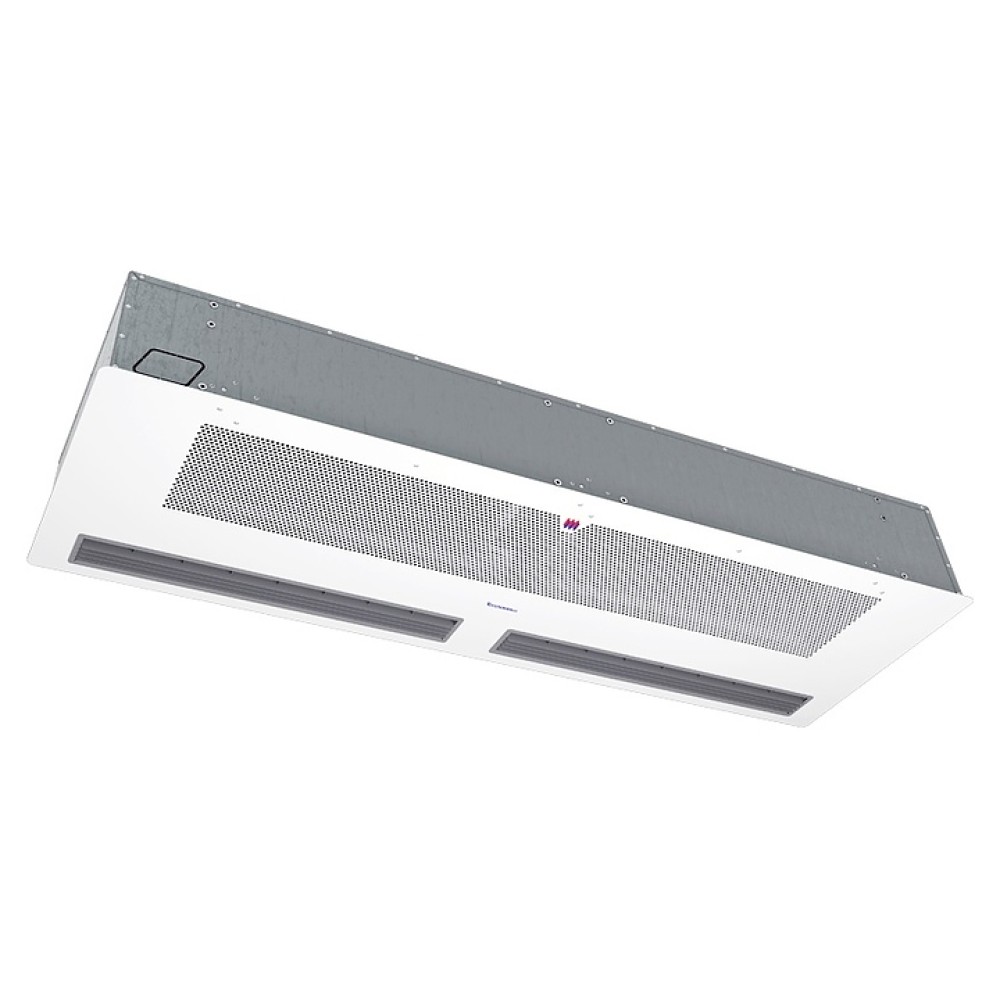 Воздушная завеса Тепломаш КЭВ-12П3081E серии 300 Потолочная предназначена для защиты от внешнего притока холодного или теплого воздуха, пыли, насекомых и неприятных запахов путем установки в дверных проемах жилых, торговых и административных помещений, гостиниц, медицинских и общеобразовательных учреждений. Модель оснащена 2 блоками диаметральных (тангенциальных) вентиляторов с электродвигателем, воздухозаборной и воздуховыпускной решетками на лицевой панели. Корпус выполнен из оцинкованной стали, лицевая панель – из стали с антикоррозийным покрытием порошковой краской светло-серого оттенка (RAL 7035), корпусы пульта и выносной панели – из ударопрочного белого пластика.