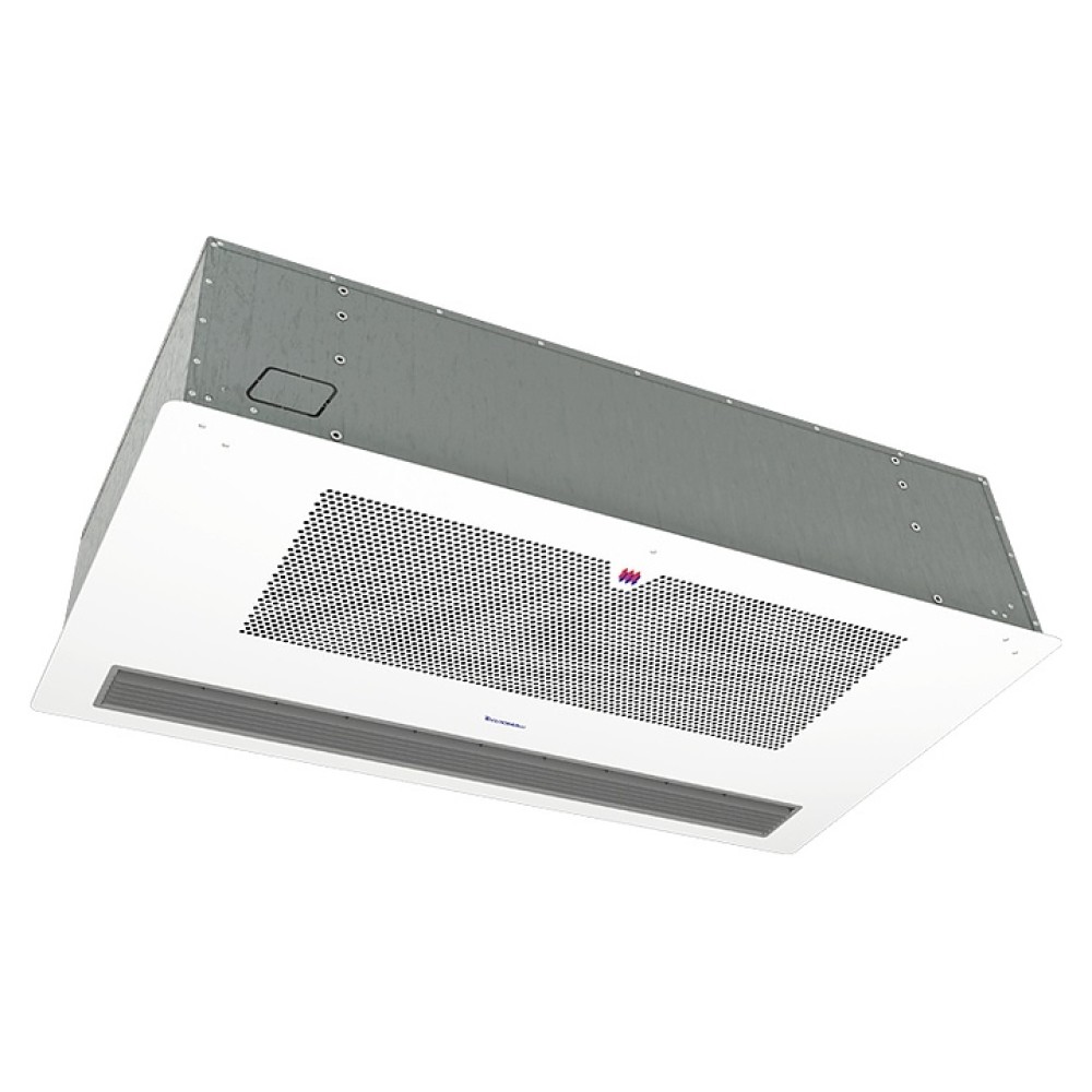Воздушная завеса Тепломаш КЭВ-18П4071E серии 400 Потолочная предназначена для защиты от внешнего притока холодного или теплого воздуха, пыли, насекомых и неприятных запахов путем установки в дверных проемах жилых, торговых и административных помещений, гостиниц, медицинских и общеобразовательных учреждений. Модель оснащена 2 блоками диаметральных (тангенциальных) вентиляторов с электродвигателем, воздухозаборной и воздуховыпускной решетками на лицевой панели. Корпус выполнен из оцинкованной стали, лицевая панель – из стали с антикоррозийным покрытием порошковой краской светло-серого оттенка (RAL 7035), корпусы пульта и выносной панели – из ударопрочного белого пластика.
