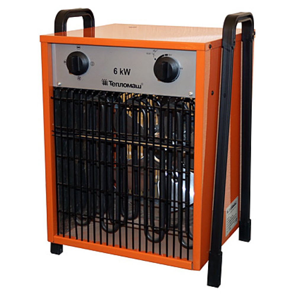 Тепловентилятор Тепломаш КЭВ-6С40Е предназначен для обогрева офисных, торговых, производственных, складских и других помещений. Прибор оснащен терморегулятором и трубчатыми электрическими нагревателами (ТЭНами). Управление осуществляется 2 вращающимися ручками: роторного переключателя и терморегулятора, установленными на передней панели корпуса.