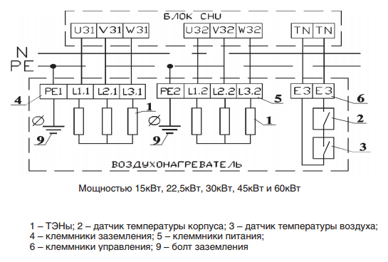 В качестве нагревающих элементов используются трубчатые электрические элементы (ТЭНы).