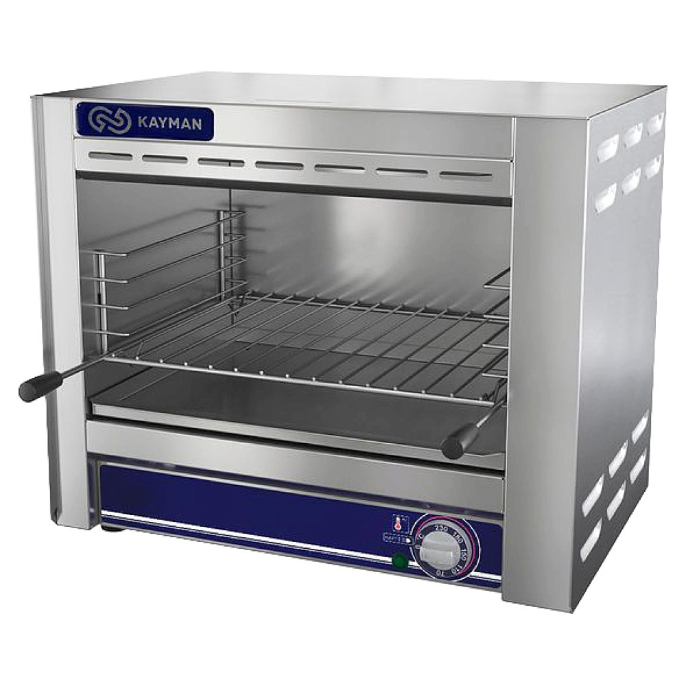 Гриль Salamander KAYMAN ГСЛ-01 А используется на предприятиях общественного питания и торговли для разогрева блюд перед подачей или придания им красивой золотистой корочки. Модель оснащена направляющими под решетку и поддоном для сбора крошек и жира. Все элементы, контактирующие с пищевыми продуктами, выполнены из нержавеющей стали, ручки защищены пластиковыми накладками.