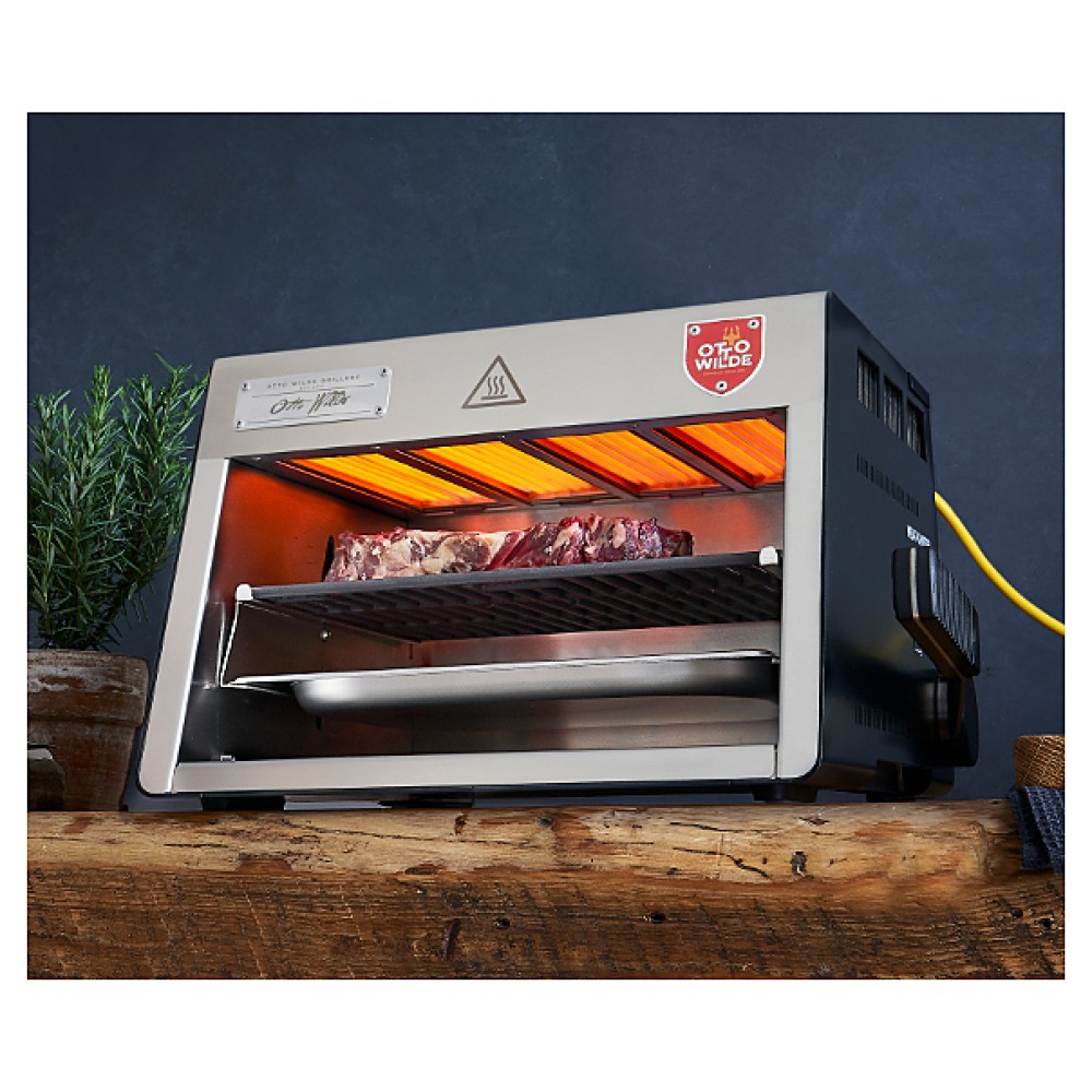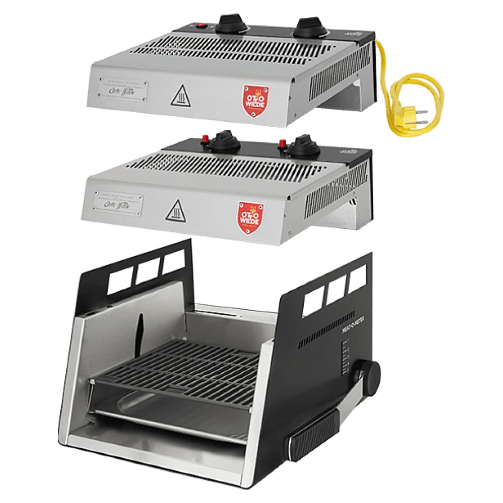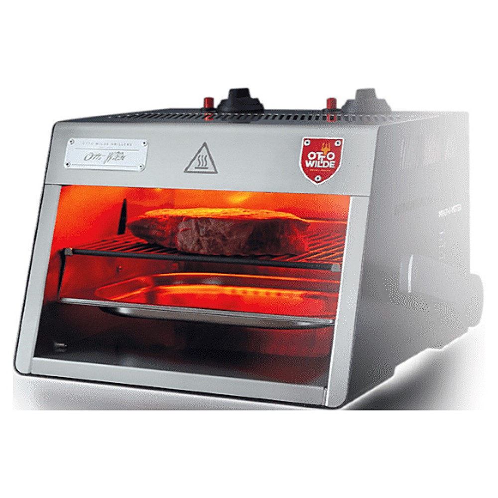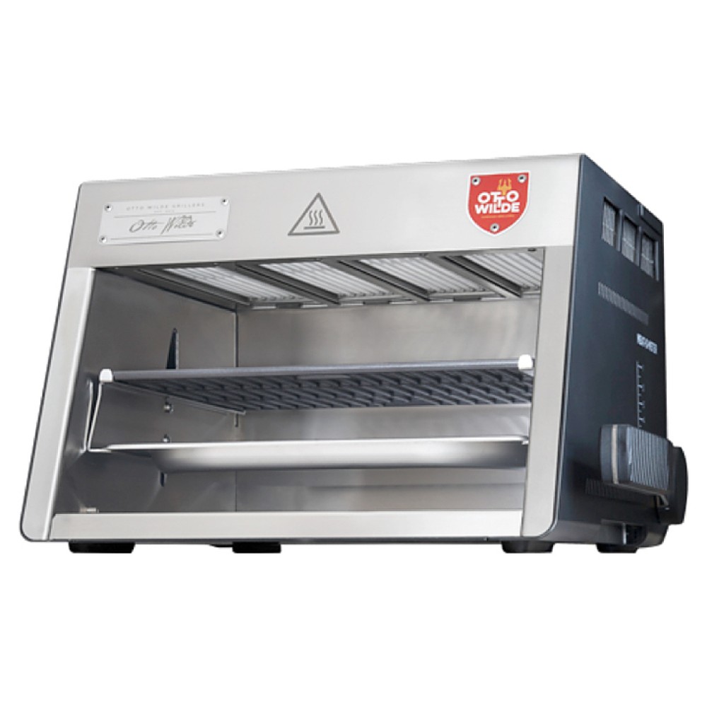 Гриль Otto Wilde E-O.F.B. предназначен для обжаривания мяса, рыбы и овощей, приготовления сэндвичей, полуфабрикатов, подогрева булочек, гамбургеров, хот-догов и поддержания готовых блюд в разогретом состоянии на предприятиях общественного питания и торговли. Модель оснащена механическим управлением и съемным глубоким поддоном для жира и остатков пищи. Корпус и поддон выполнены из нержавеющей стали AISI 304, решетка - из чугуна.