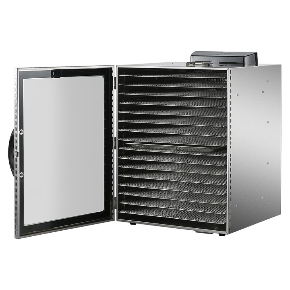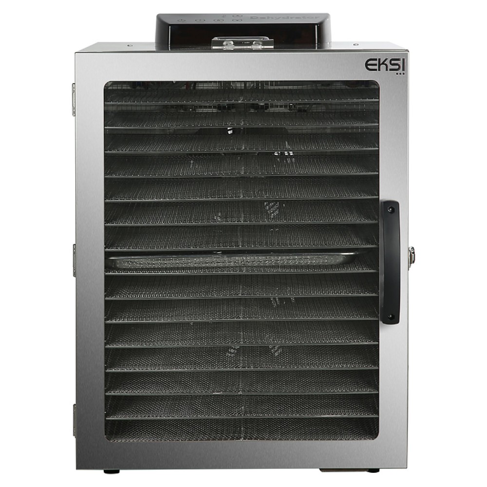 Дегидратор Eksi EKD-16G предназначен для сушки фруктов, овощей и грибов на предприятиях общественного питания и торговли. Модель оснащена цифровой панелью управления, таймером на 12 часов и 16 решетками. Корпус выполнен из нержавеющей стали.