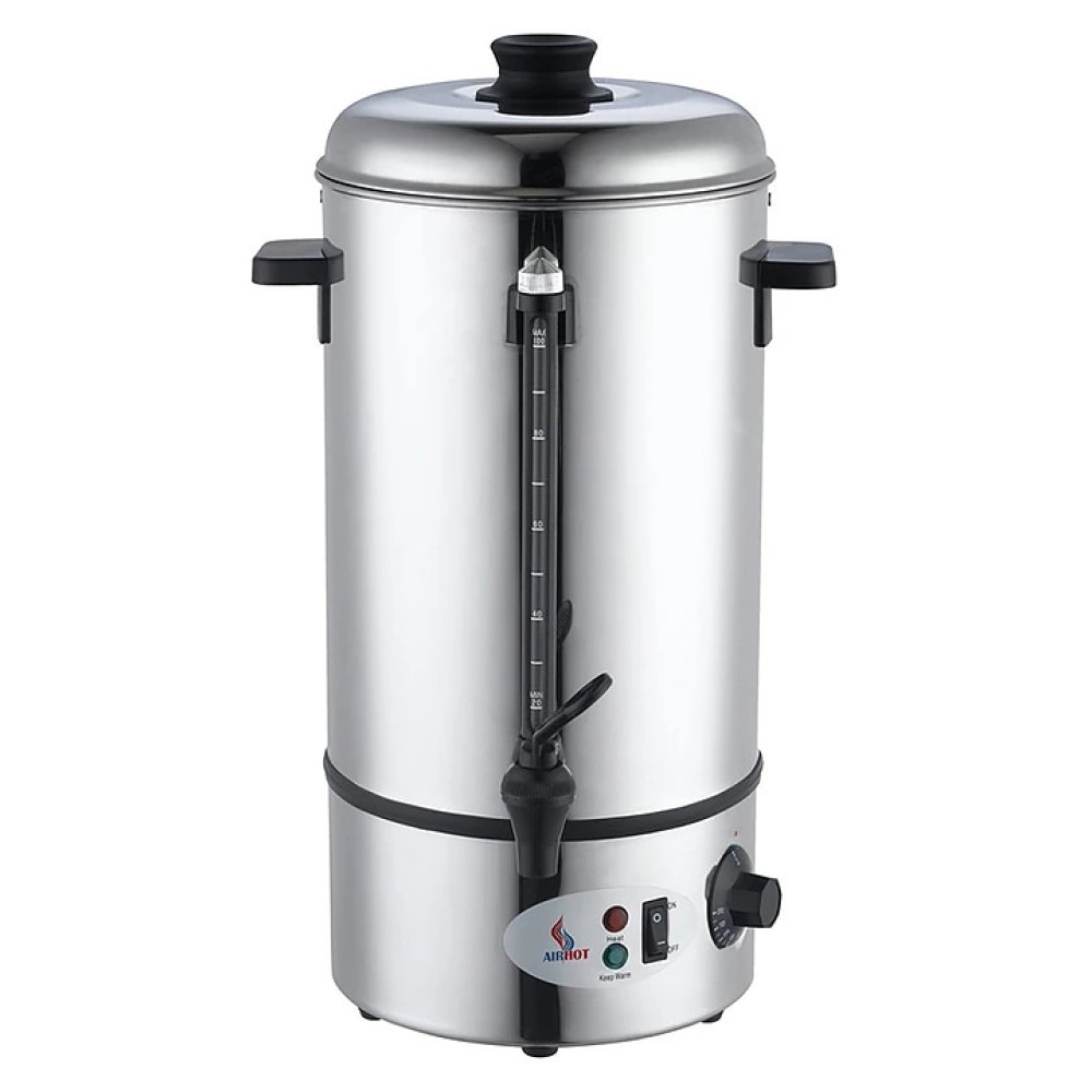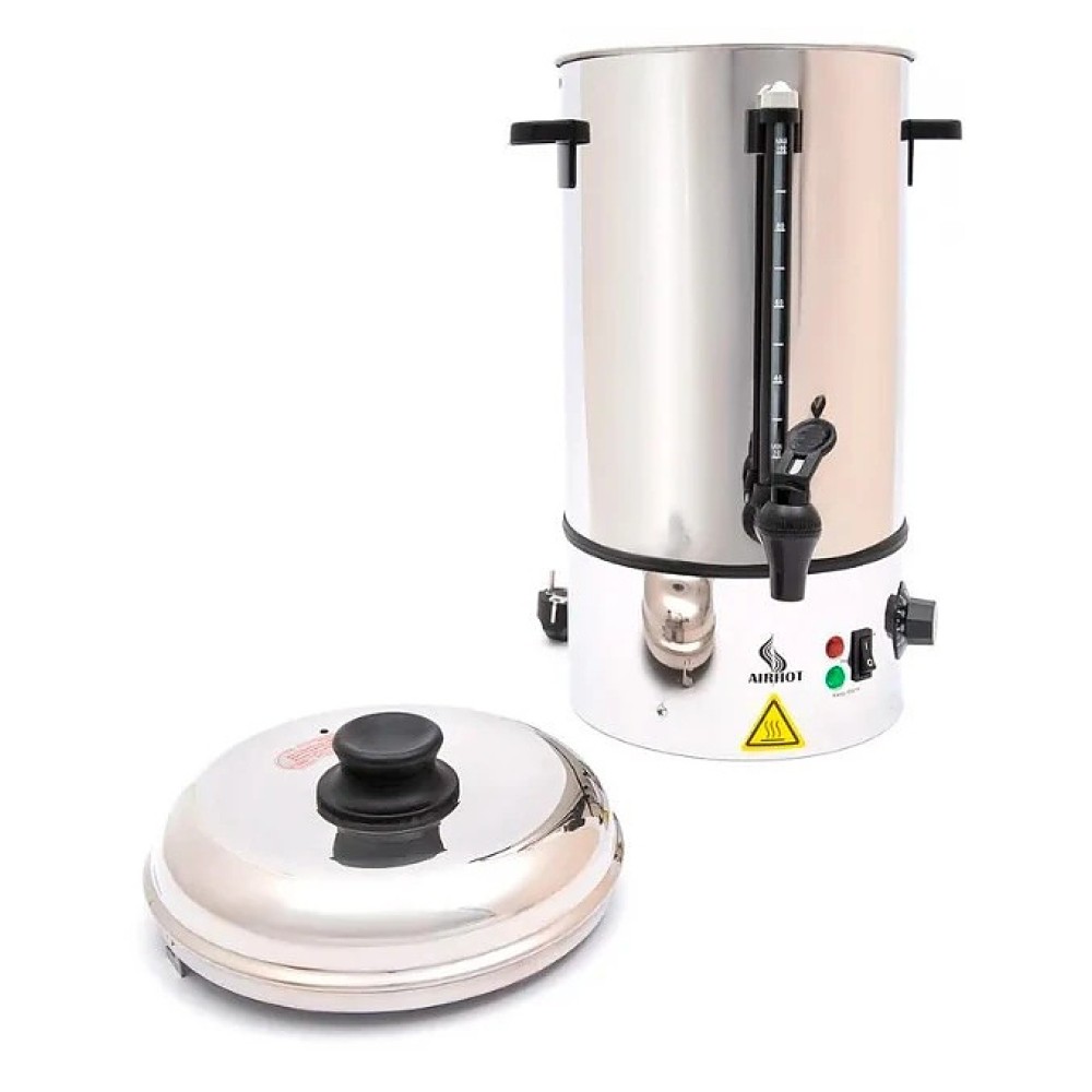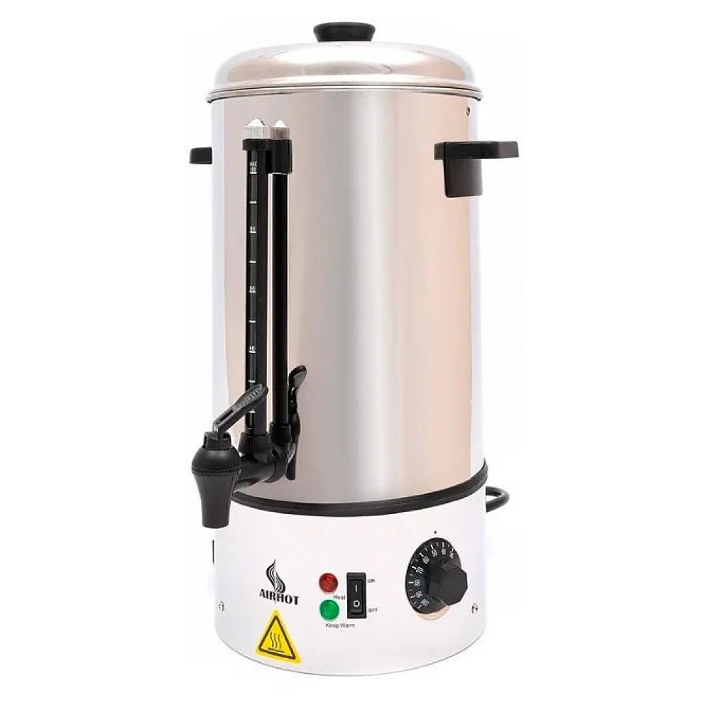 Кипятильник Airhot WB-15 используется на предприятиях общественного питания и торговли, в офисах, отелях и т.д. для нагрева большого количества воды. Модель оснащена автоматическим контролем уровня и температуры воды, аварийным термостатом, индикатором нагрева и закрытым ТЭНом. Корпус выполнен из нержавеющей стали.