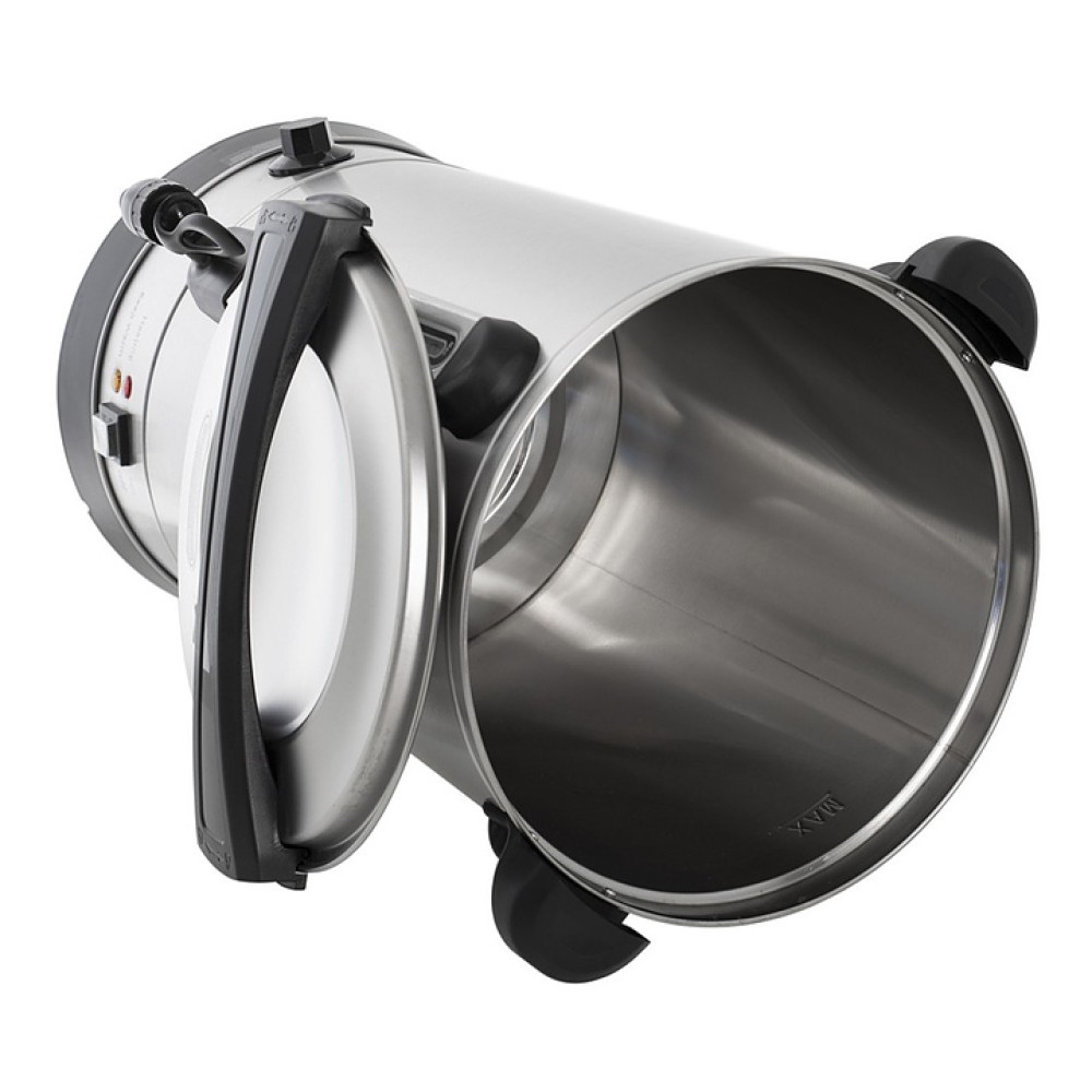Электрокипятильник Foodatlas HLB-20.5L используется на предприятиях общественного питания и торговли для нагрева воды и последующего поддержания ее заданной температуры. Модель оснащена термоконтроллером, краном для розлива и крышкой с рукояткой. Корпус и соприкасающиеся с водой компоненты выполнены из высококачественной нержавеющей стали, основание, рукоятка и внешняя облицовка крана – из прочного полипропилена, упаковка – картонная коробка.