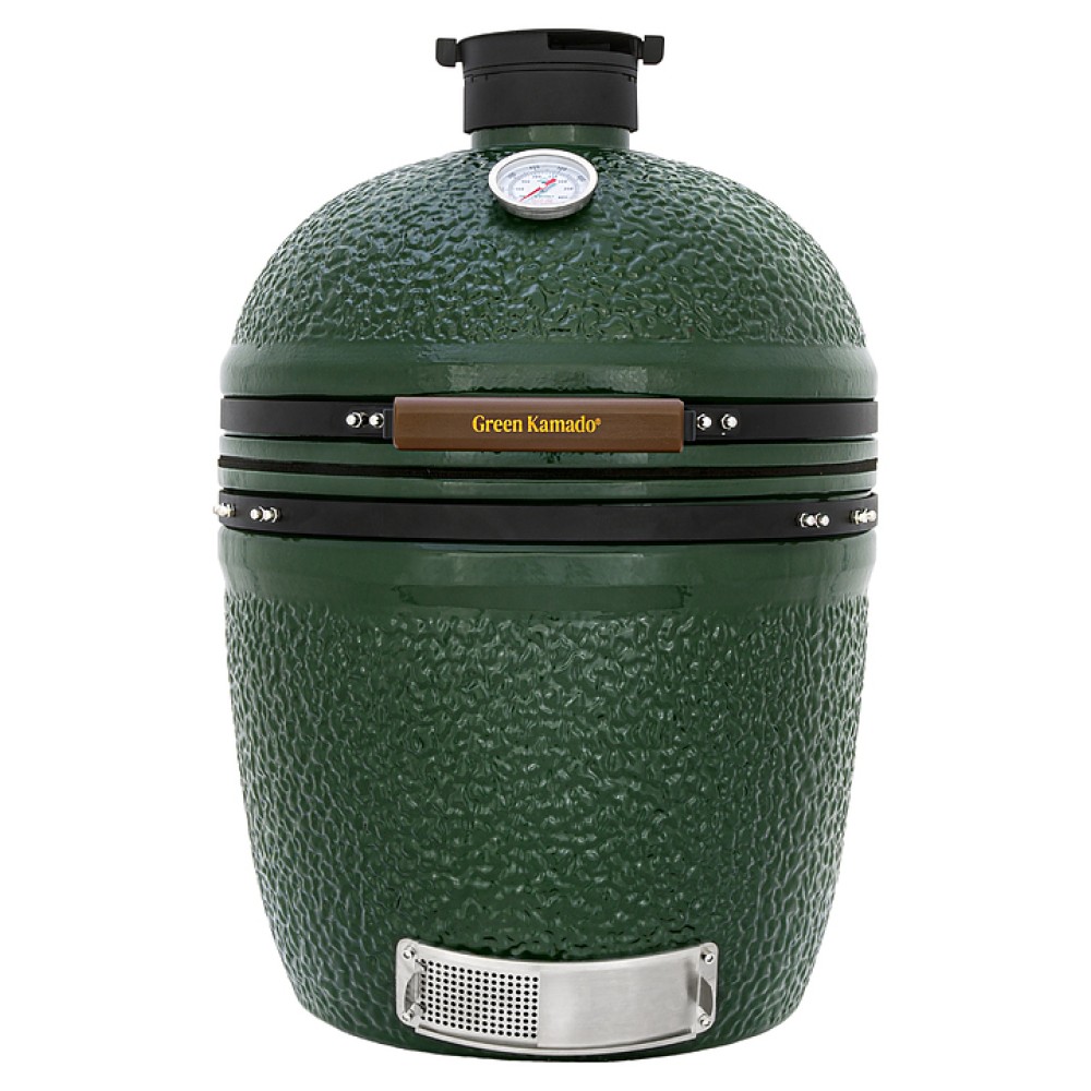 Керамический гриль Green Kamado L предназначен для приготовления блюд на древесном угле в частных домах и на предприятиях общественного питания. Модель сочетает в себе несколько видов оборудования для высокотемпературного приготовления пищи: гриль, коптильня и мини-печь для пиццы в одном устройстве. Керамический корпус покрыт специальной глазурью, защищающей от выцветания на солнце и воздействия атмосферных осадков.