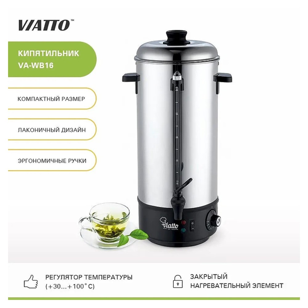 Электрокипятильник VIATTO MK-WB16 предназначен для приготовления кипятка для варки гарниров, овощей, сосисок, пельменей и других продуктов питания, а также для заваривания и приготовления горячих напитков, стерилизации кухонной и столовой посуды, столовых приборов на предприятиях общественного питания и торговли. Модель оснащена закрытым нагревательным элементом. Корпус выполнен из нержавеющей стали и пластика.