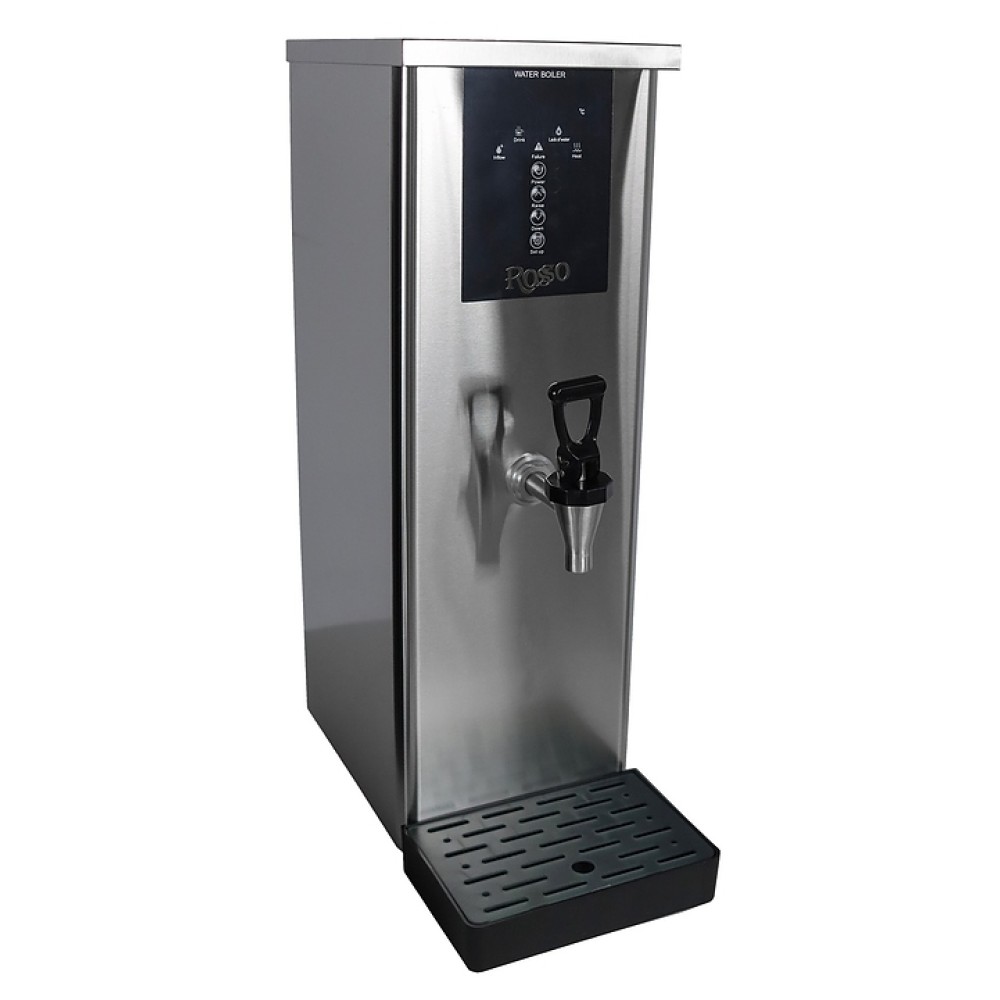 Проточный электрический кипятильник Rosso LXS02 предназначен для быстрого нагрева, кипячения и поддержания температуры воды на предприятиях общественного питания и торговли. Модель работает по принципу ступенчатого цикла, который позволяет избавиться от повторного нагрева воды и экономит её потребление. Кипятильник требует подключения к электросети и водопроводу, что позволяет непрерывно разливать кипяток.