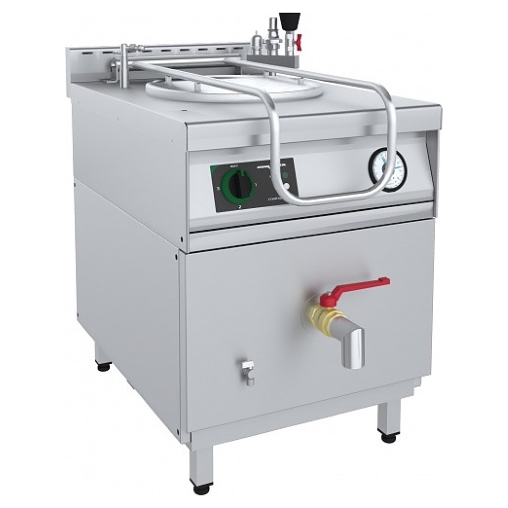 Варочный котел Пищевые Технологии КПЭЛ-60 предназначен для приготовления вторых и третьих блюд, бульонов, соусов и других продуктов жидкой консистенции, а также для кипячения воды на предприятиях пищевой промышленности и общественного питания. Модель оснащена варочной емкостью с круглой крышкой, блоком трубчатых электронагревателей (ТЭНов), электромеханической панелью управления, заливным и сливным кранами. Столешница, емкость, парогенератор, паровая рубашка, крышка с рукояткой, фронтальные и боковые облицовочные панели выполнены из нержавеющей стали, задняя стенка и основание – из оцинкованной стали.