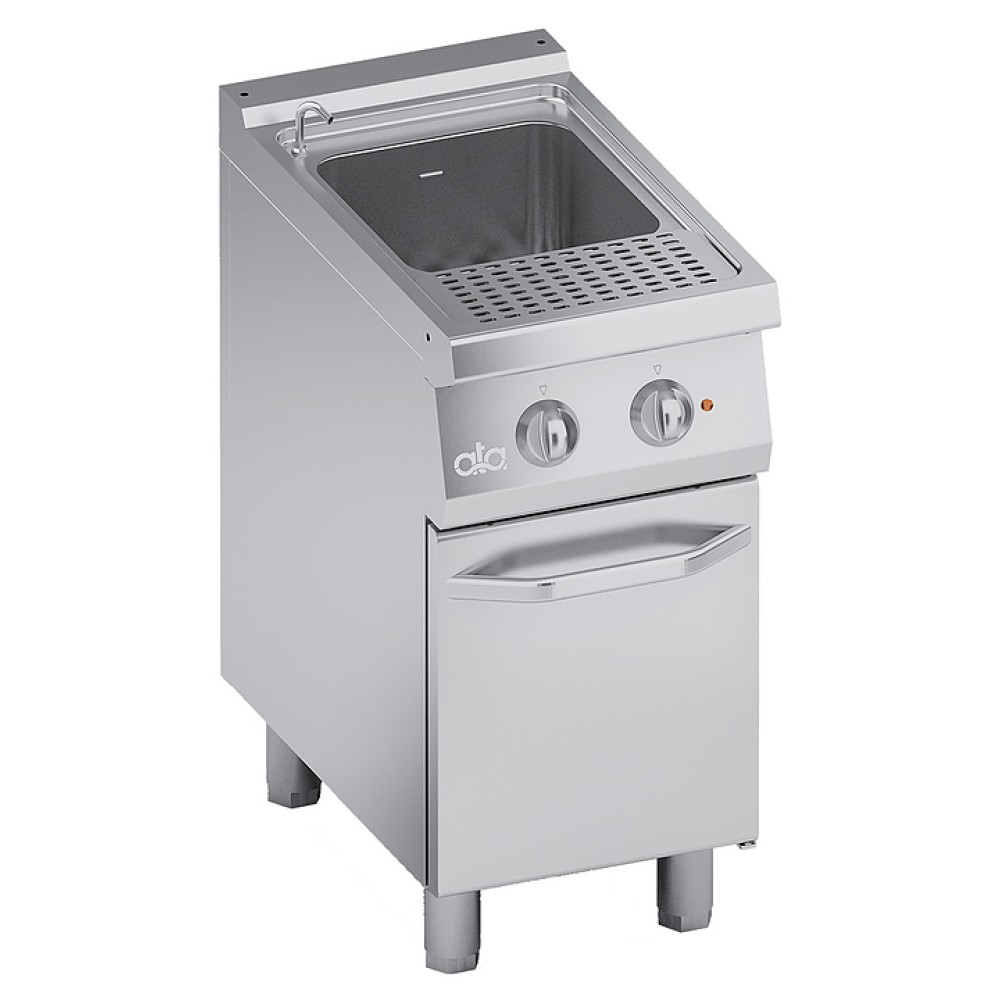 Электрическая макароноварка АТА ELECTRIC PASTA COOKER 26 LT предназначена для варки всех видов макаронных изделий, пельменей, вареников, овощей, корнеплодов и яиц на предприятиях общественного питания и торговли. Модель оснащена электромеханической панелью управления и ручным предохранительным термостатом. Формованный резервуар изготовлен из нержавеющей стали AISI 316 с закругленными краями, рабочая поверхность - из стали AISI 304.