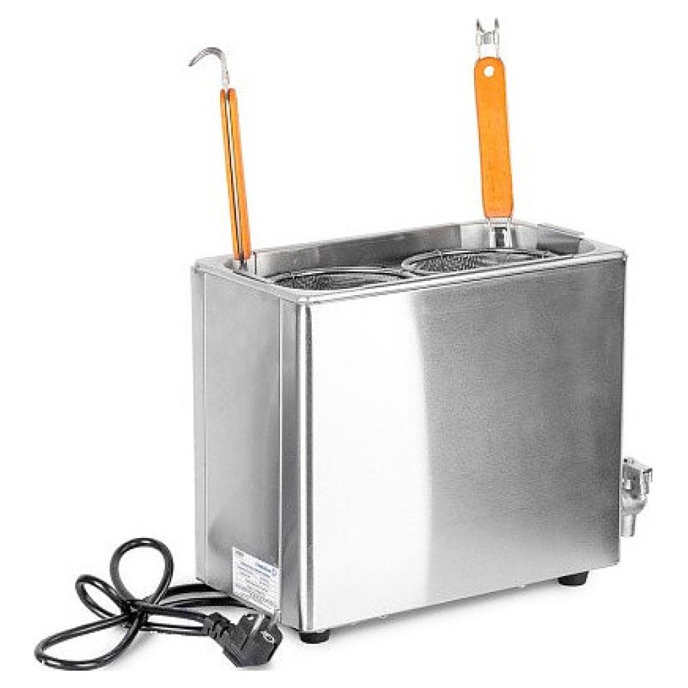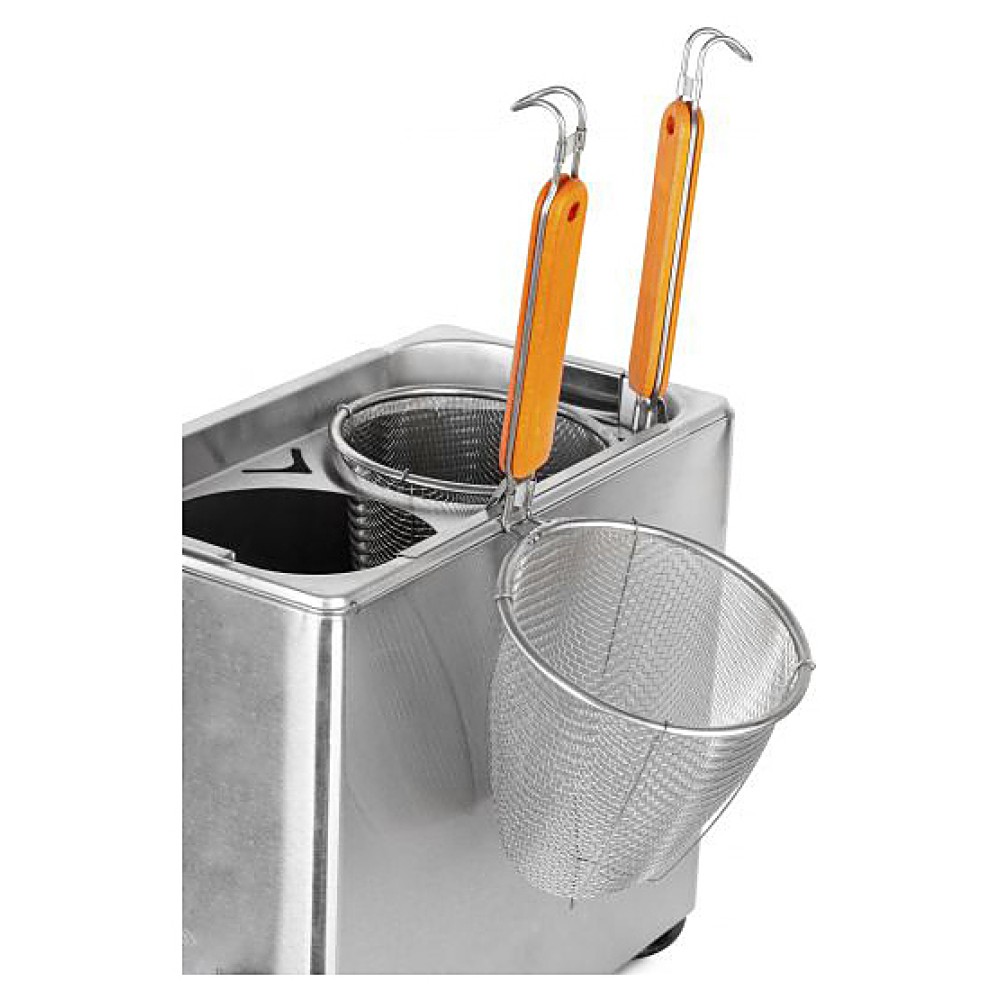 Макароноварка Foodatlas EH-802N используется на предприятиях общественного питания и торговли для отваривания различных видов макаронных изделий и других продуктов из теста. Модель оснащена краном для слива воды. Корпус выполнен из нержавеющей сталь 430, толщиной 0,5 мм, камеры - из нержавеющей стали 201, толщиной 0,8 мм, корзины - нержавеющей стали 201.