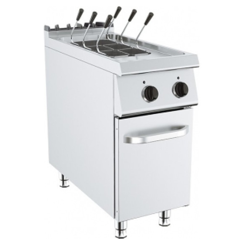 Электрическая макароноварка KUSINA G9M100E серии 900 используется на предприятиях общественного питания и торговли для варки всех видов макаронных изделий, пельменей, вареников, овощей, корнеплодов и яиц. Модель оснащена электромеханической панелью управления с индикатором нагрева и предохранительным термостатом. Корпус и нагревательные элементы выполнены из нержавеющей стали, ванна - из нержавеющей стали AISI 316.