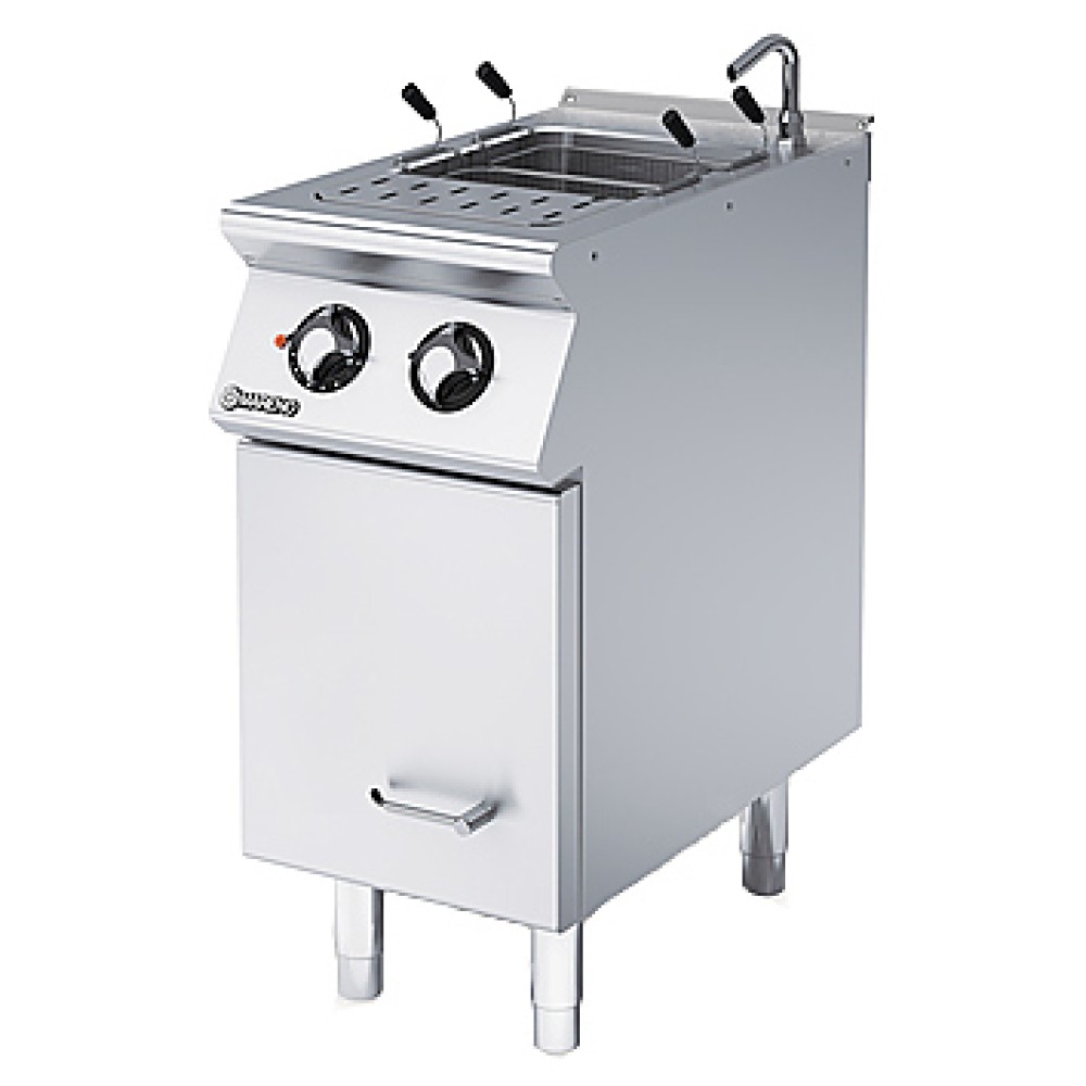 Аппарат MARENO NPC74E – это профессиональное оборудование, позволяющее готовить различные виды макаронных и пельменных изделий, овощи, яйца, морепродукты и т.д. Для создания оптимальных условий для варки того или иного продукта предусмотрена возможность плавной регулировки температуры посредством термостата, расположенного на электромеханической панели управления.