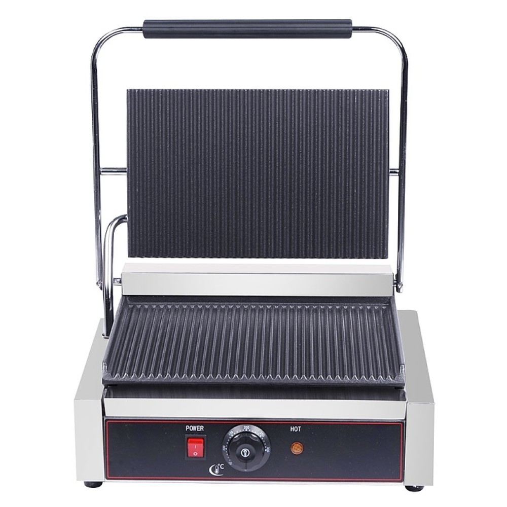 Контактный гриль Rosso HEG-811E предназначен для жарки мяса, рыбы, птицы, овощей, бутербродов и сэндвичей на предприятиях общественного питания и торговли. Модель оснащена терморегулятором. Корпус выполнен из нержавеющей стали.