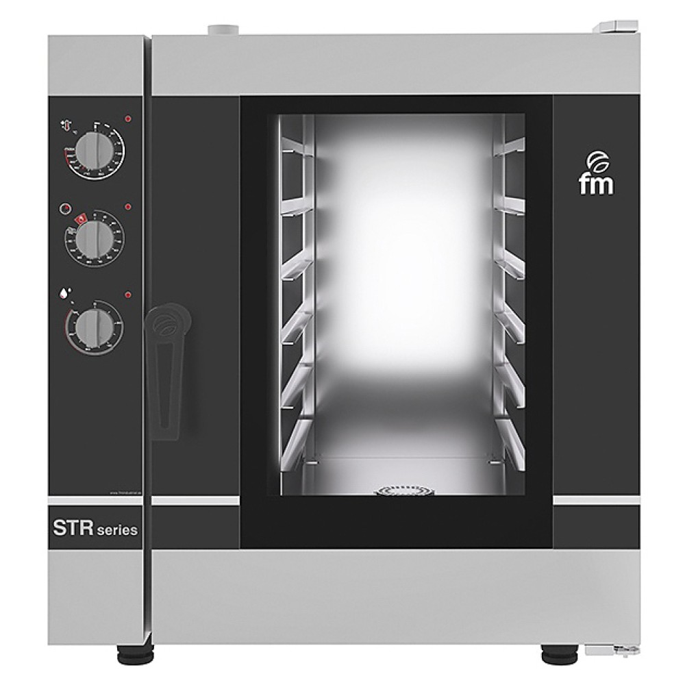 Пароконвектомат FM STR 606 M предназначен для выпекания различных кондитерских и хлебобулочных изделий, замороженных или предварительно выдержанных в расстоечном шкафу заготовок из теста на предприятиях пищевой промышленности, общественного питания и торговли. Модель оснащена универсальными направляющими, которые позволяют разместить противни и листы для выпечки. Корпус и камера выполнены из нержавеющей стали.