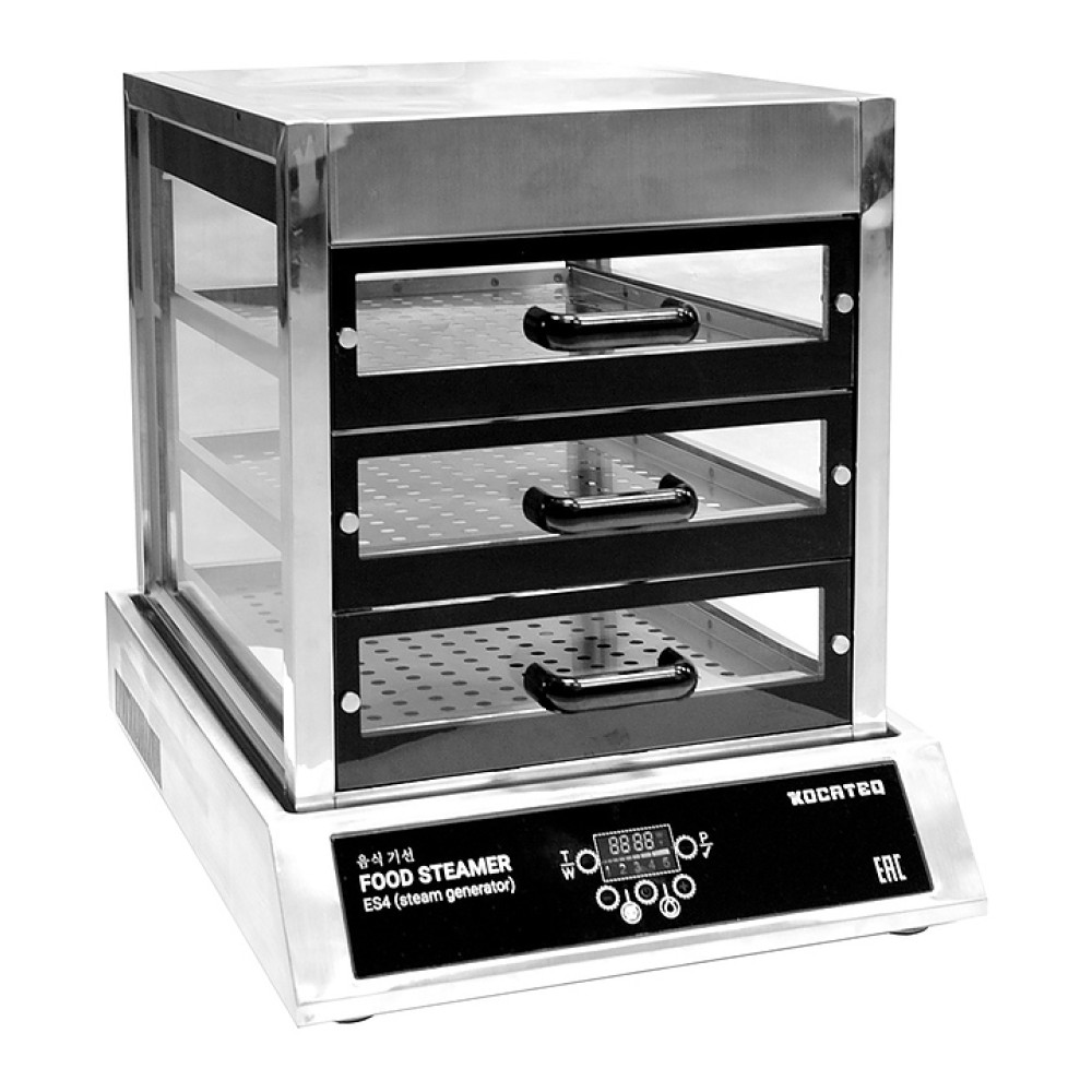 Пароварка Kocateq ES4G используется на предприятиях общественного питания и торговли для приготовления на пару вегетарианского меню, мантов, вареников, баоцзов и другие традиционные блюда восточной кухни. Модель оснащена 3-х уровневой стеклянной витриной, термостатом и цифровой панелью управления с сенсорными кнопками. Корпус выполнен из нержавеющей стали.
