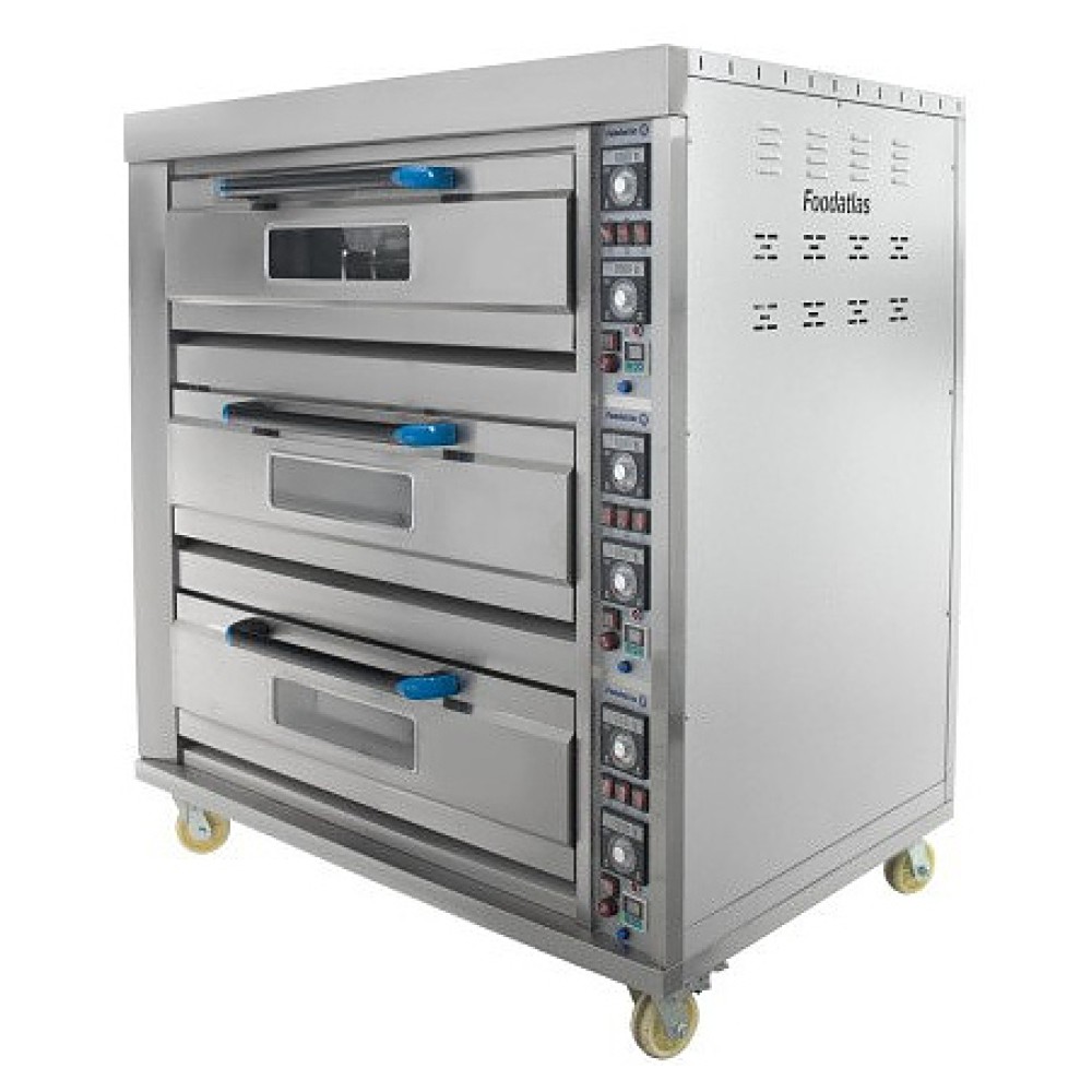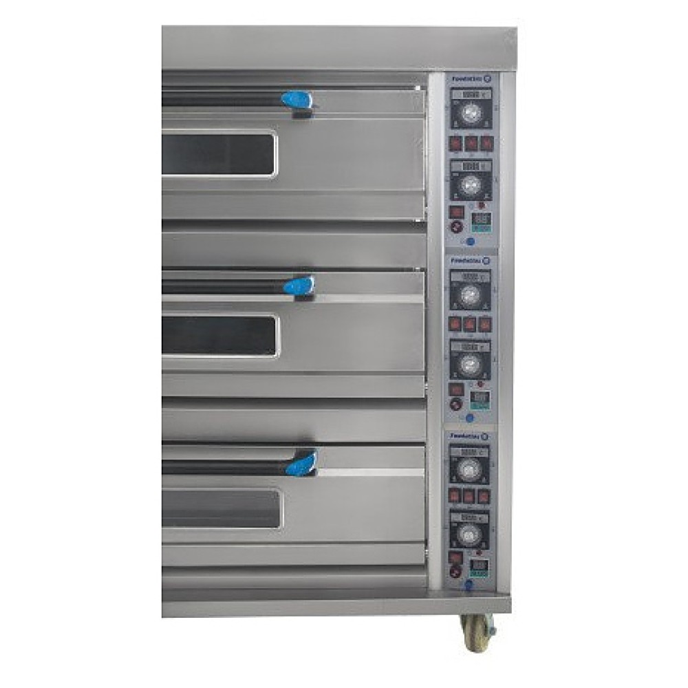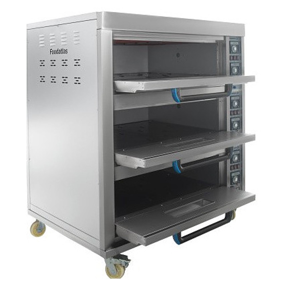 Хлебопекарная печь Foodatlas HEO-750/3 используется на предприятиях общественного питания и торговли для выпечки широкого ассортимента хлебобулочных и кондитерских изделий, приготовления мясных, рыбных, овощных и других блюд. Модель оснащена электромеханической панелью управления с 2 регуляторами температуры и световыми индикаторами нагрева для каждого яруса, внутренней подсветкой и дверцами со смотровыми окнами, позволяющими контролировать рабочий процесс. Корпус выполнен из нержавеющей стали с теплоизоляцией современными материалами, дверцы - из нержавеющей стали и стекла.