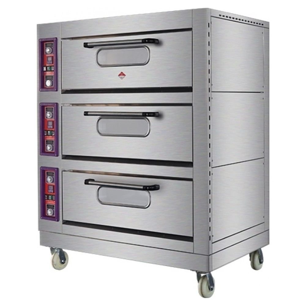 Подовая печь Hualian YXD-60C предназначена для выпечки хлебобулочных и кондитерских изделий, а также приготовления и разогрева мясных и овощных блюд на предприятиях пищевой промышленности, общественного питания и торговли. Модель оснащена 3 жарочными камерами с трубчатыми электронагревателями (ТЭНами), откидными дверьми и электромеханической панелью управления. Корпус и внутренняя облицовка камер выполнены из высококачественной нержавеющей стали.