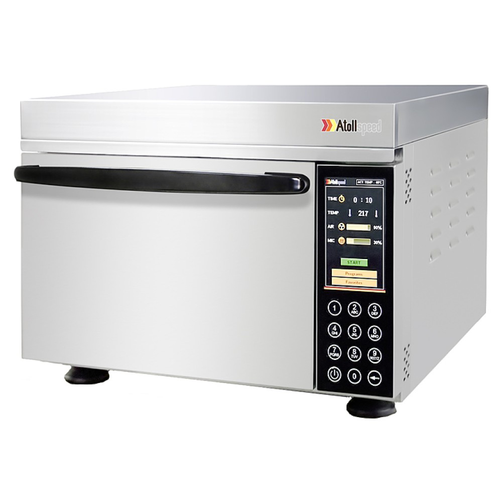 Высокоскоростная комбинированная печь Atollspeed AS300T предназначена для приготовления, разогрева и размораживания широкого спектра продуктов и блюд на предприятиях общественного питания и торговли. Модель оснащена цветным сенсорным стеклянным дисплеем и каталитическим фильтром. Камера выполнена из нержавеющей стали.