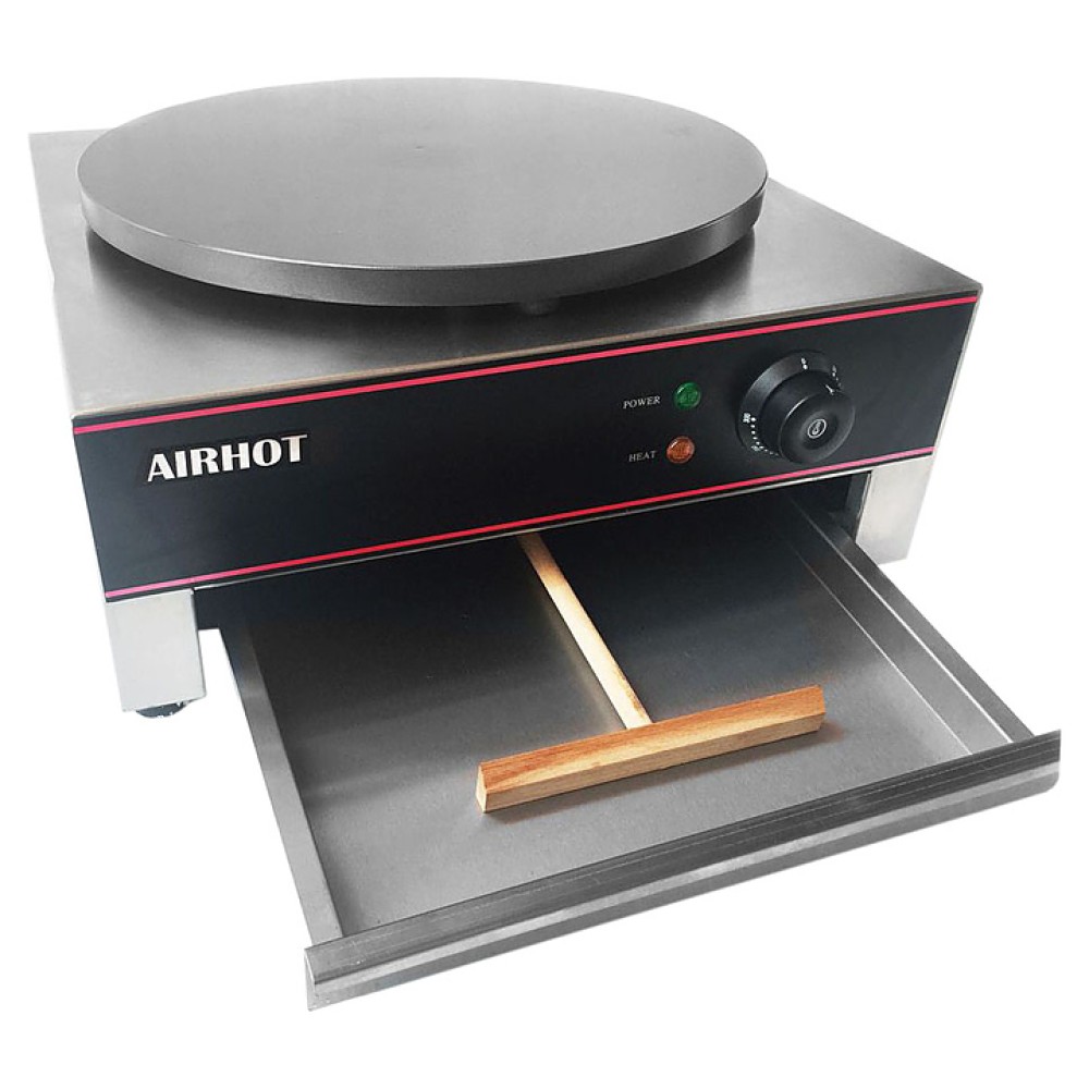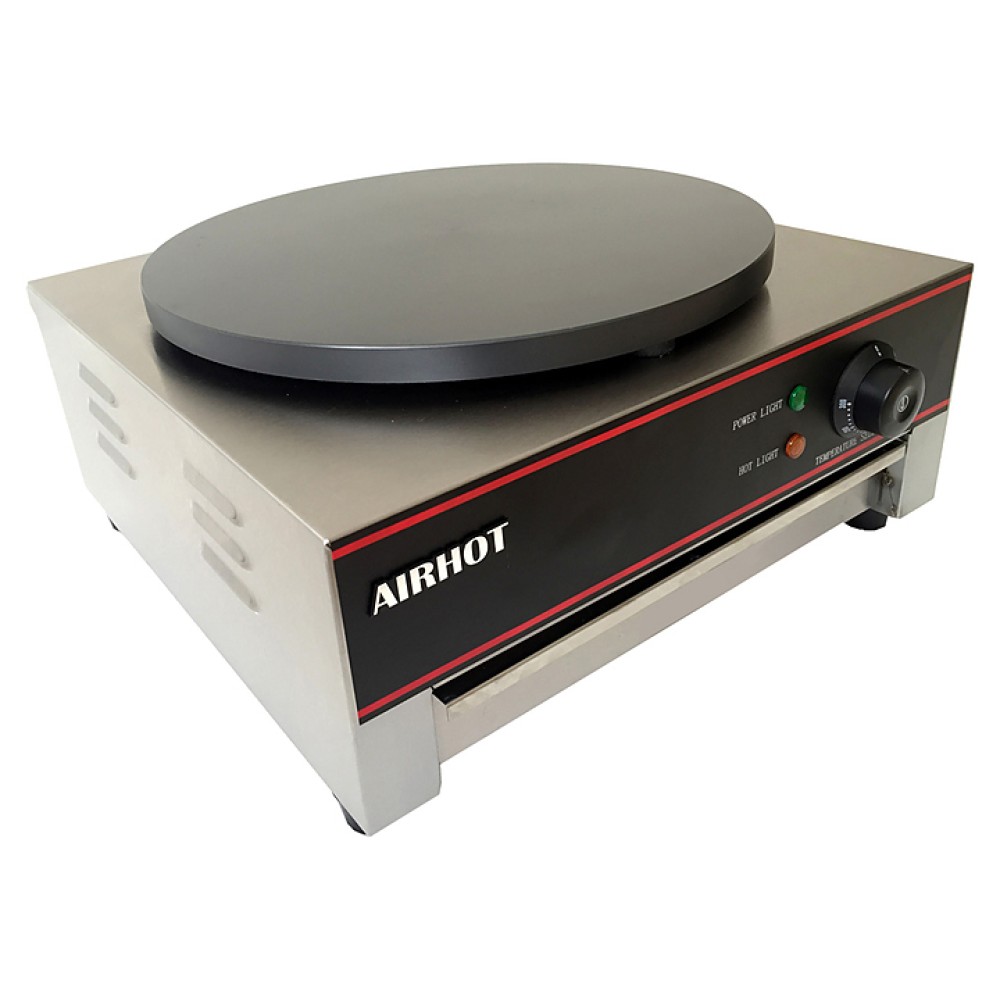 Блинница Airhot BE-1 используется на предприятиях общественного питания и торговли. Модель оснащена световым индикатором нагрева и термостатом, отключающим и включающим нагревательный элемент в процессе работы. Корпус выполнен из нержавеющей стали, жарочная поверхность - из чугуна с антипригарным покрытием.