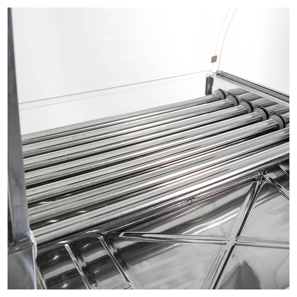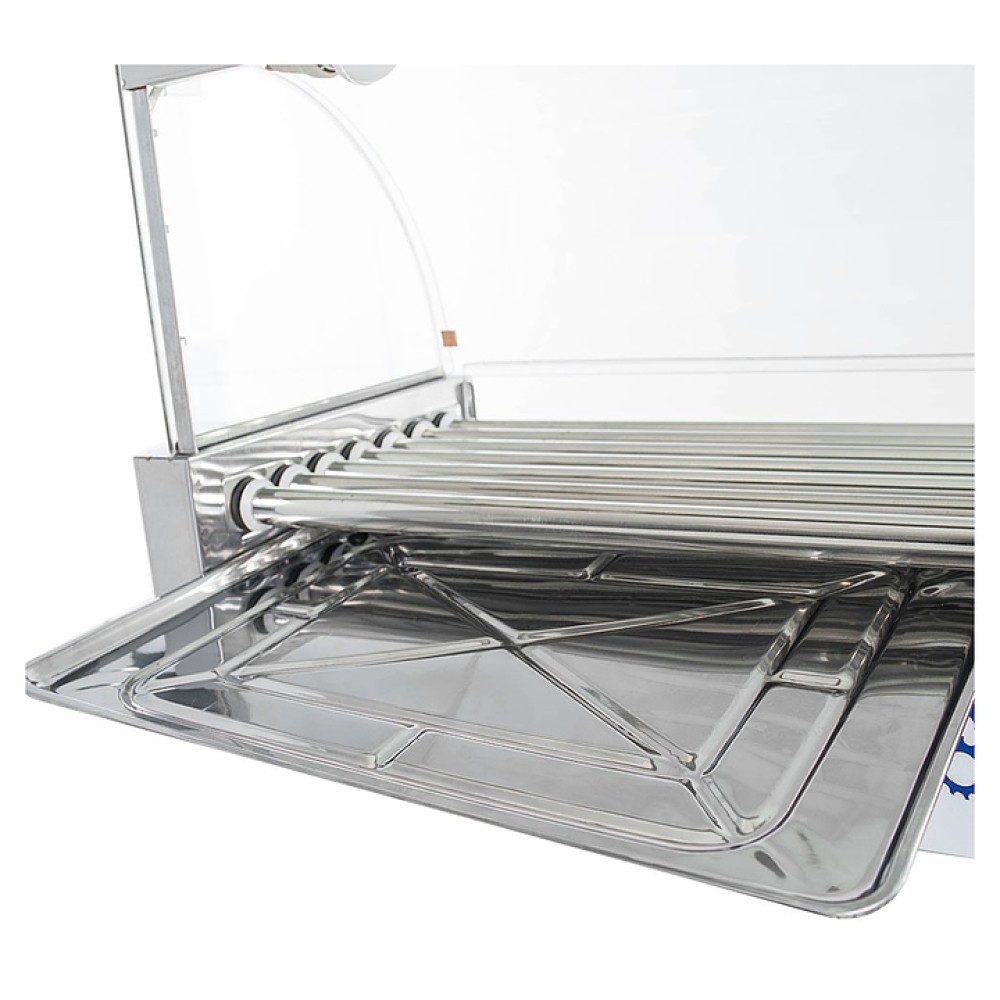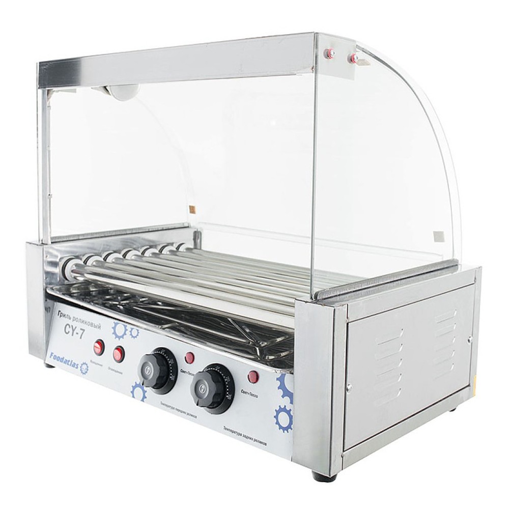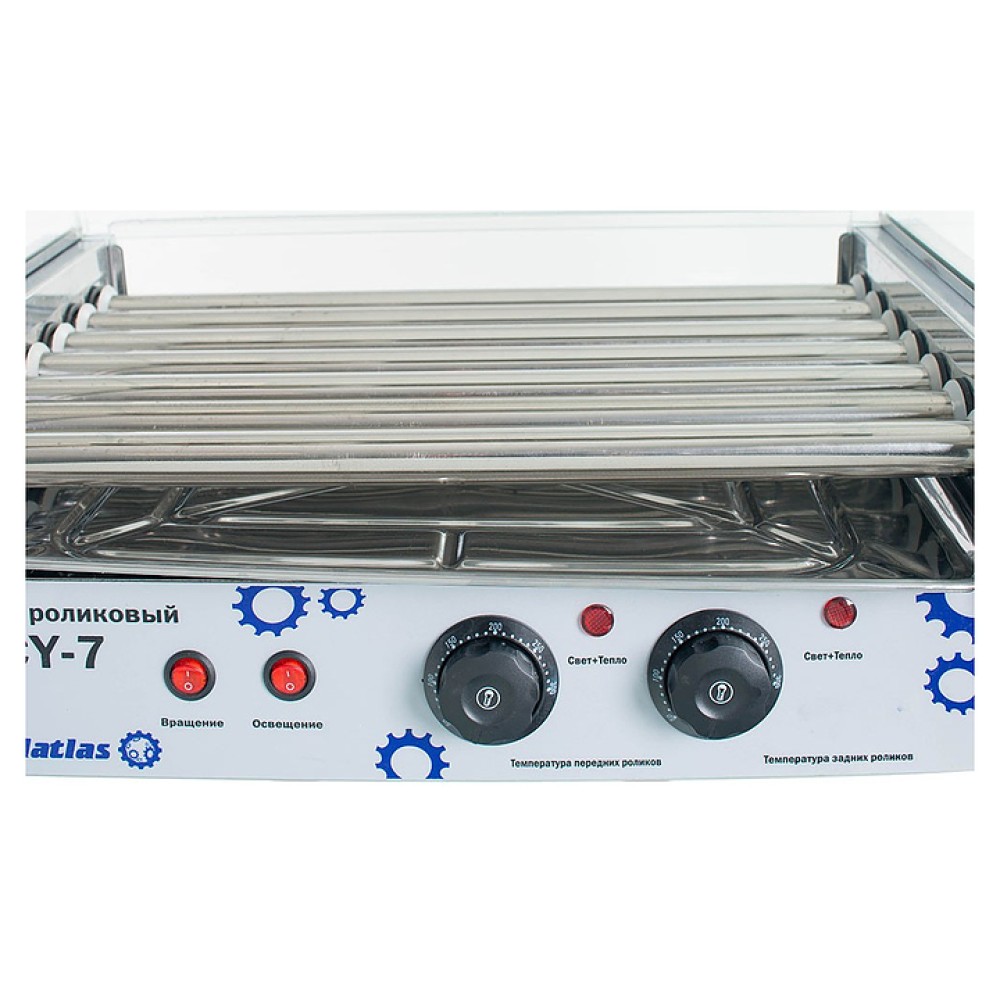 Роликовый гриль Foodatlas CY-7 предназначен для быстрого равномерного обжаривания сосисок, сарделек и колбасок на предприятиях общественного питания и торговли. Модель оснащена 2 терморегуляторами, 7 ТЭНами и подсветкой. Корпус, ролики и поддон выполнены из нержавеющей стали.