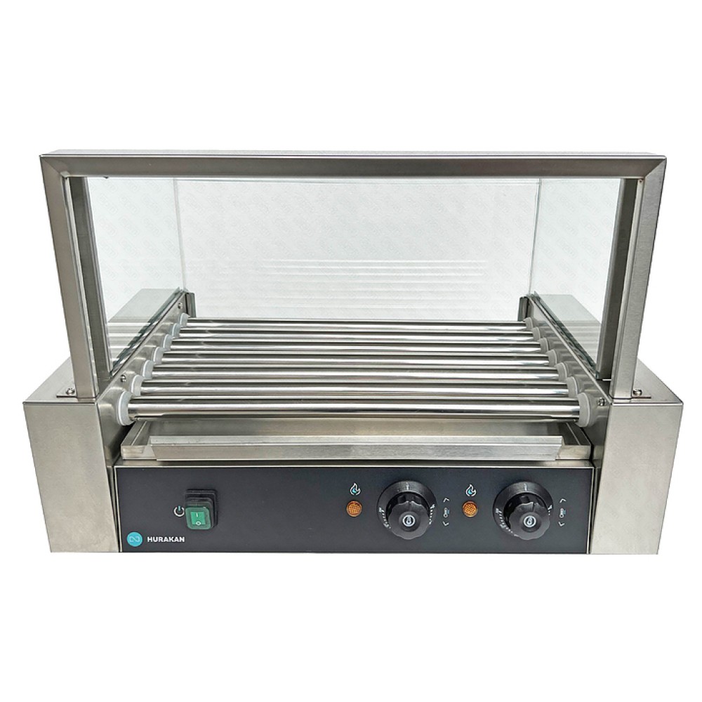 Роликовый гриль Hurakan HKN-GW7MC предназначен для обжаривания сосисок и сарделек, мясных и рыбных рулетов на предприятиях общественного питания и торговли. Модель оснащена защитным экраном. Корпус и ролики выполнены из нержавеющей стали.