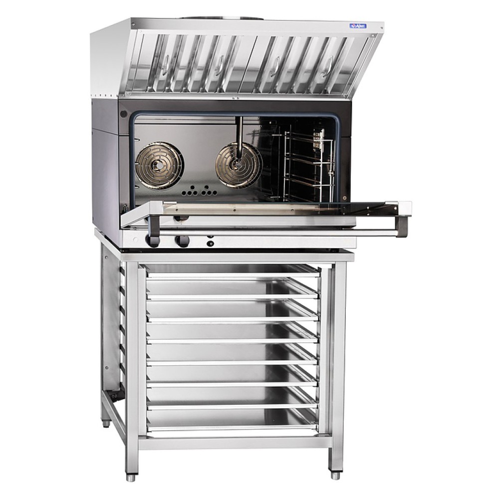 Печь используется совместно с вытяжным зонтом Abat ЗВВ-4-6/4 и ЗВВ-4-6/4П. Подходящий расстоечный шкаф ШРТ-8, ШРТ-8Э или подставка ПК-8.