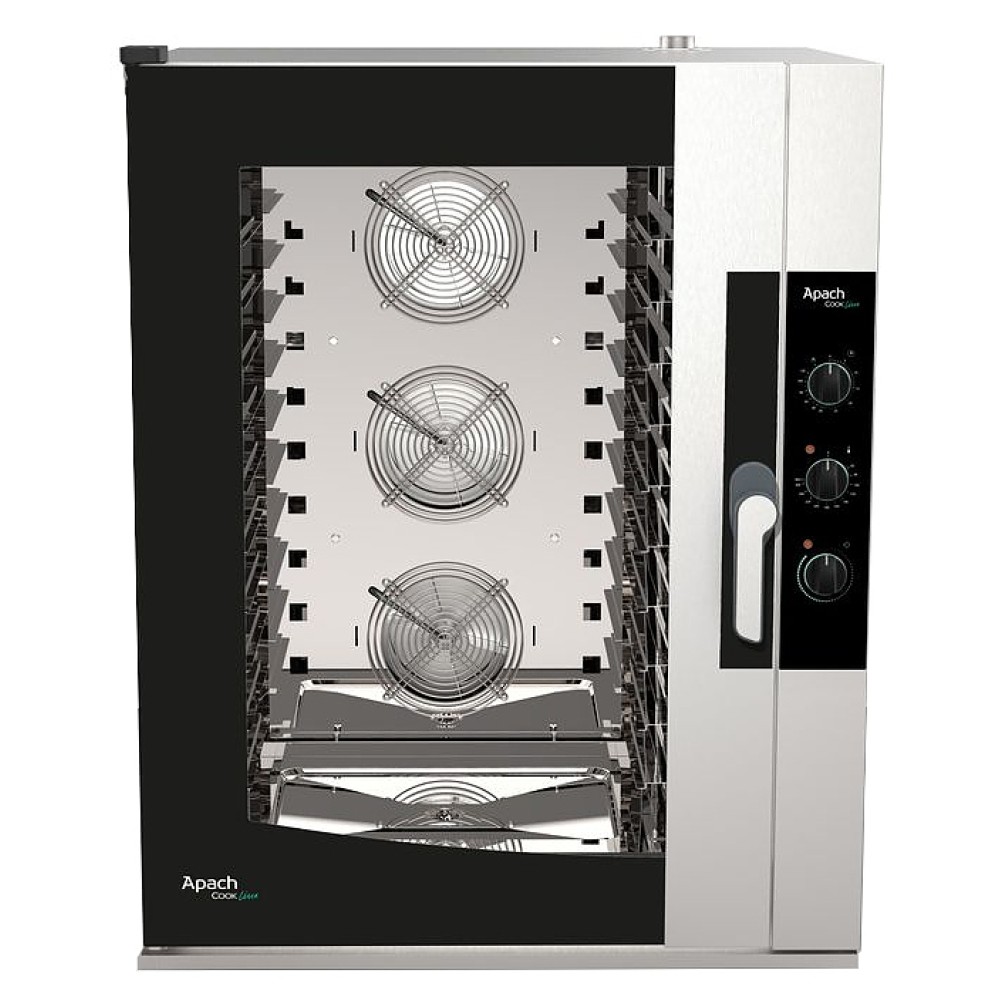 Конвекционная печь Apach AB10QM предназначена для выпекания или разогрева кондитерских и хлебобулочных изделий, готовых блюд, замороженных или предварительно выдержанных в расстоечном шкафу заготовок из теста на предприятиях общественного питания и торговли. Модель оснащена электромеханической панелью управления и подсветкой камеры галогеновой лампой. Камера легко чистится благодаря закругленным углам. Корпус и камера печи изготовлены из нержавеющей стали, дверца - из двойного закаленного стекла.