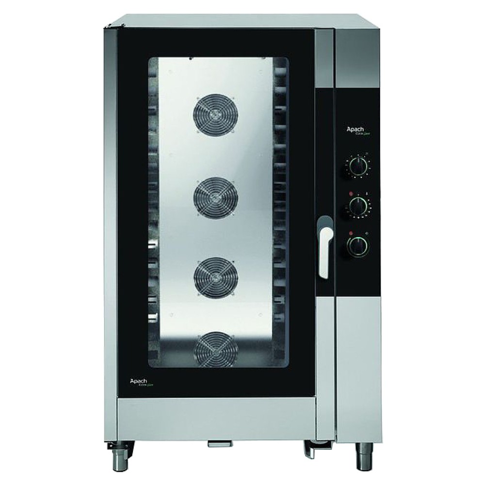 Конвекционная печь Apach AB16QM предназначена для выпекания или разогрева кондитерских и хлебобулочных изделий, готовых блюд, замороженных или предварительно выдержанных в расстоечном шкафу заготовок из теста на предприятиях общественного питания и торговли. Модель оснащена электромеханической панелью управления и подсветка камеры галогеновой лампой. Камера легко чистится благодаря закругленным углам. Корпус выполнен из нержавеющей стали, дверца - из двойного закаленного стекла.
