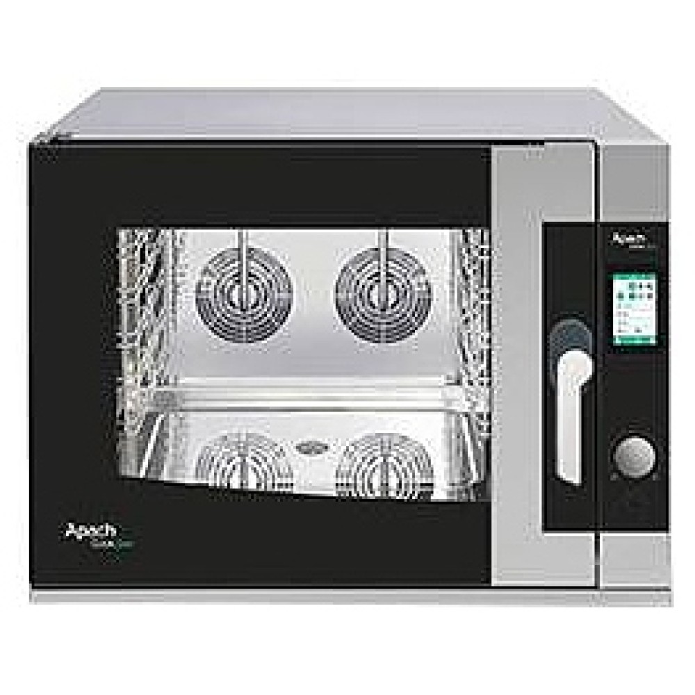 Конвекционная печь Apach AB4QT предназначена для выпекания или разогрева кондитерских и хлебобулочных изделий, готовых блюд, замороженных или предварительно выдержанных в расстоечном шкафу заготовок из теста на предприятиях общественного питания и торговли. Модель оснащена емкостным TFT экраном 5" с разрешением 800х480, термощупом и встроенной в дверь светодиодной подсветкой. Корпус и камера выполнены из нержавеющей стали.