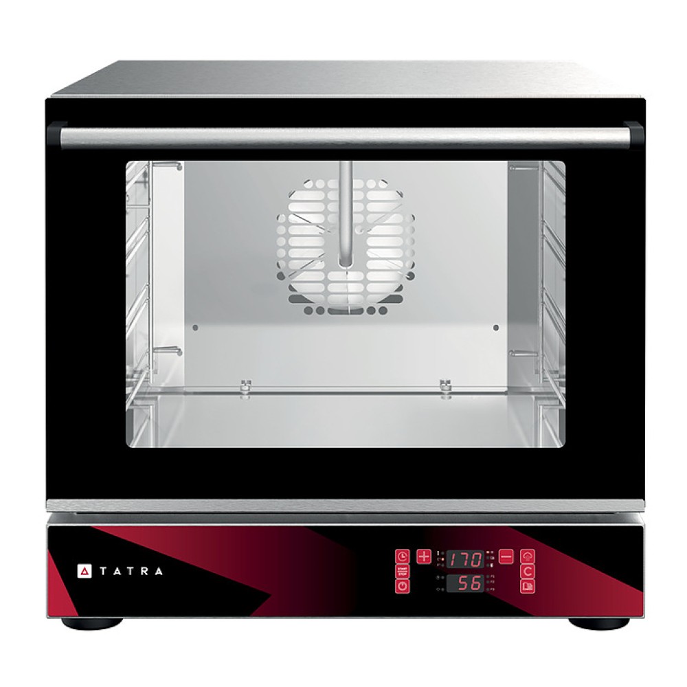 Конвекционная печь Tatara TO44DIHS предназначена для выпекания или разогрева кондитерских и хлебобулочных изделий, готовых блюд, замороженных или предварительно выдержанных в расстоечном шкафу заготовок из теста на предприятиях общественного питания и торговли. Модель оснащена электронной панелью управления и вентелятором. Корпус и камера выполнены из нержавеющей стали, двойная дверца - из закаленного стекла.