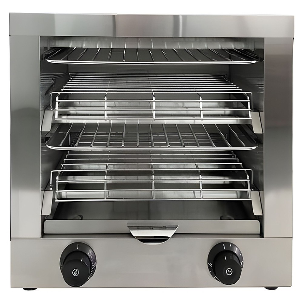 Тостер EKSI EST-2 предназначен для поджарки и подогрева кусочков хлеба на предприятиях общественного питания и торговли. Модель оснащена таймером на 30 мин, 9 кварцевыми трубками и поддоном для крошек. Корпус выплнен из нержавеющей стали.