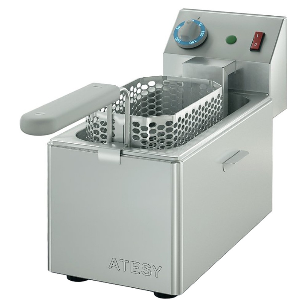 Фритюрница ATESY Панда-ЕВРО-1х1/3-Э используется на предприятиях общественного питания и торговли для приготовления различных видов продуктов в разогретом масле (фритюре). Модель оснащена терморегулятором и 2 индикаторными лампами. Изделие и сетка для загрузки продуктов полностью выполнены из пищевой нержавеющей стали, ручки сетки - из "холодного" пластика.