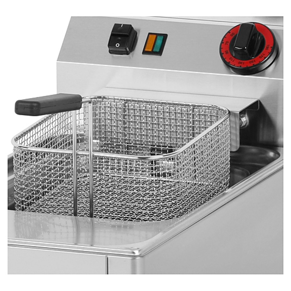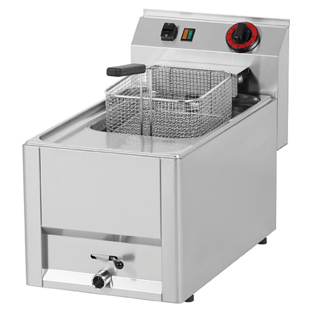 Фритюрница Azimut FE 30 EL серии 600 предназначена для приготовления блюд в большом объёме масла на предприятиях общественного питания и торговли. Модель оснащена электромеханической панелью управления, предохранительным термостатом и холодной зоной под ТЭНом. ТЭН выполнен из нержавеющей стали.