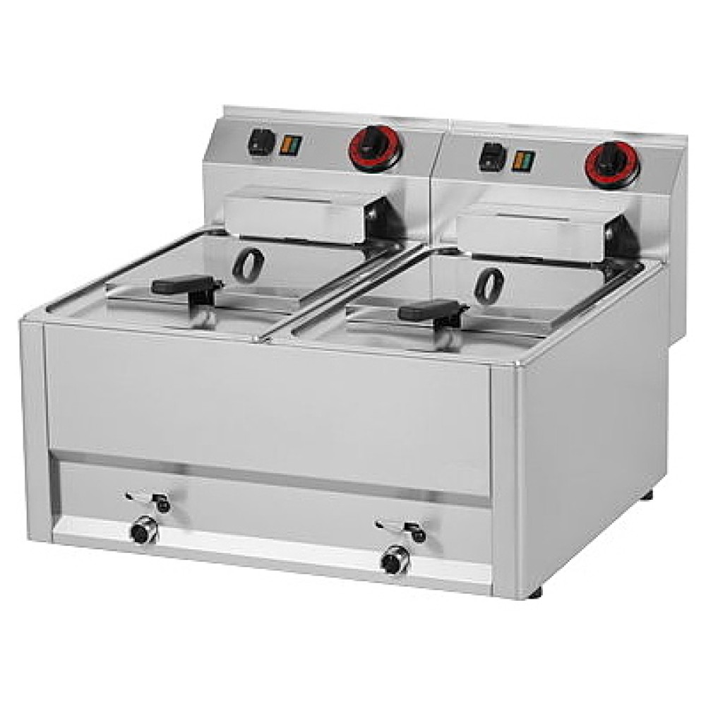 Фритюрница Azimut FE 60 EL серии 600 предназначена для приготовления блюд в большом объёме масла на предприятиях общественного питания и торговли. Модель оснащена безопасными сливными кранами для каждой ванны и холодной зоной под ТЭНами. ТЭНы выполнены из нержавеющей стали.