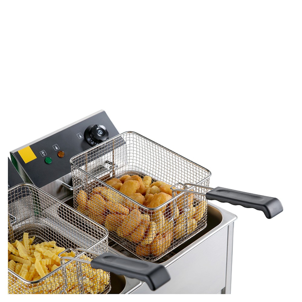 Фритюрница EKSI HEF-8L-2 рст предназначена для обжаривания продуктов в большом количестве масла при высокой температуре на предприятиях общественного питани и торговли. Модель оснащена термостатом и 2 независимыми механическими панелями управления для каждой ванны. Корпус выполнен из нержавеющей стали.