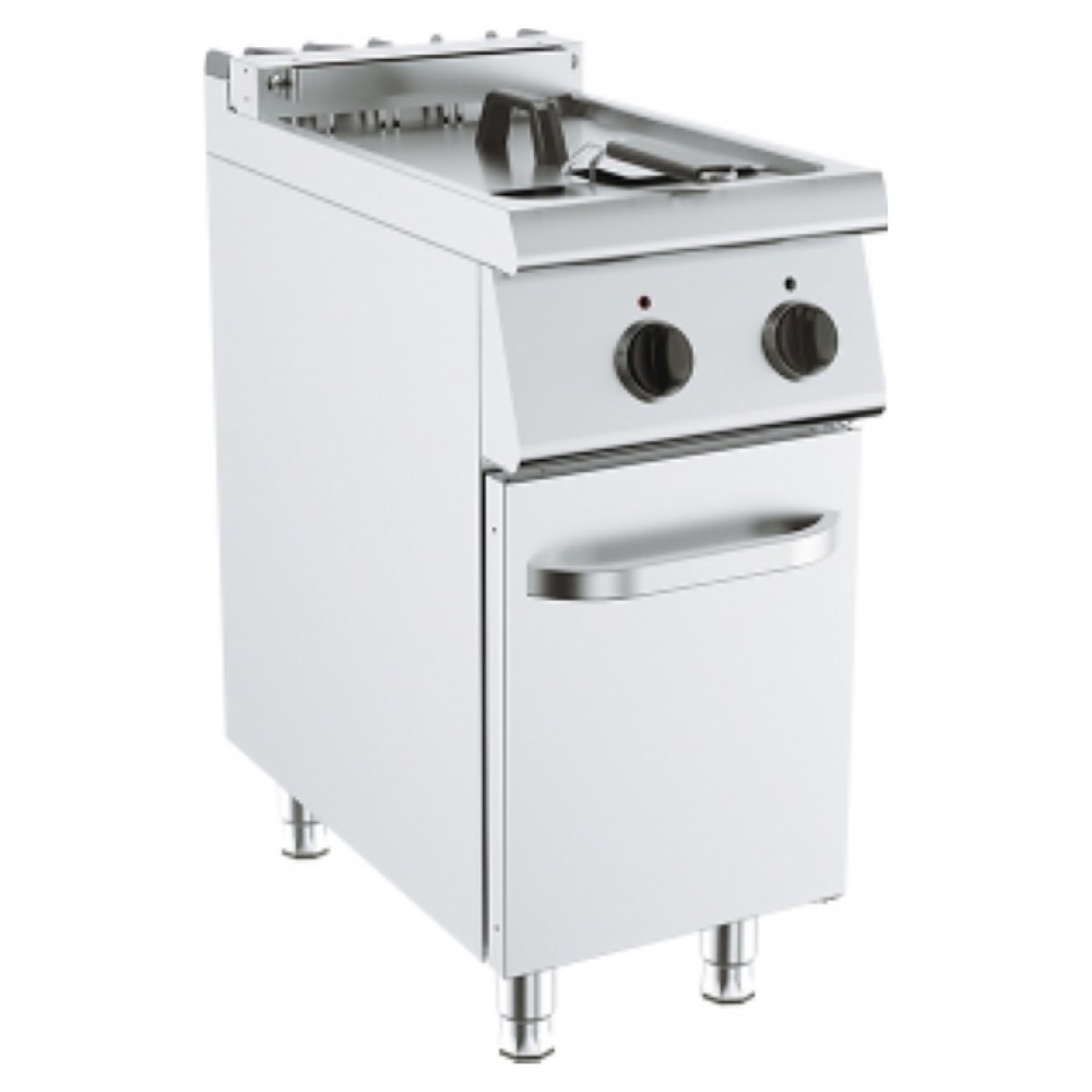 Электрическая фритюрница KUSINA G7F110E используется в составе тепловой линии 700 на предприятиях общественного питания и торговли для приготовления различных видов продуктов в разогретом масле (фритюре). Модель оснащена электромеханической панелью управления, предохранительным термостатом и распашной дверцей. Оборудование изготовлено из нержавеющей стали.