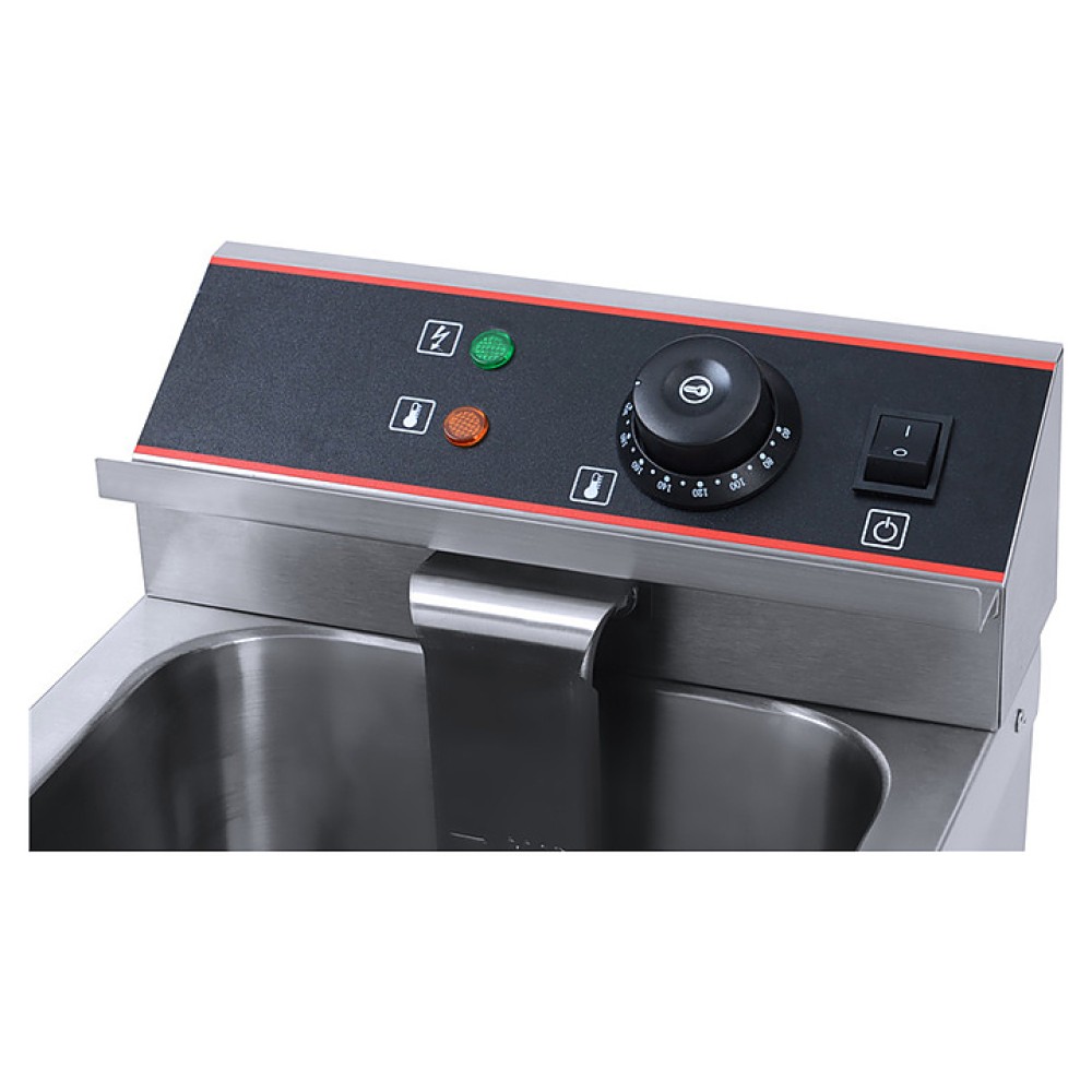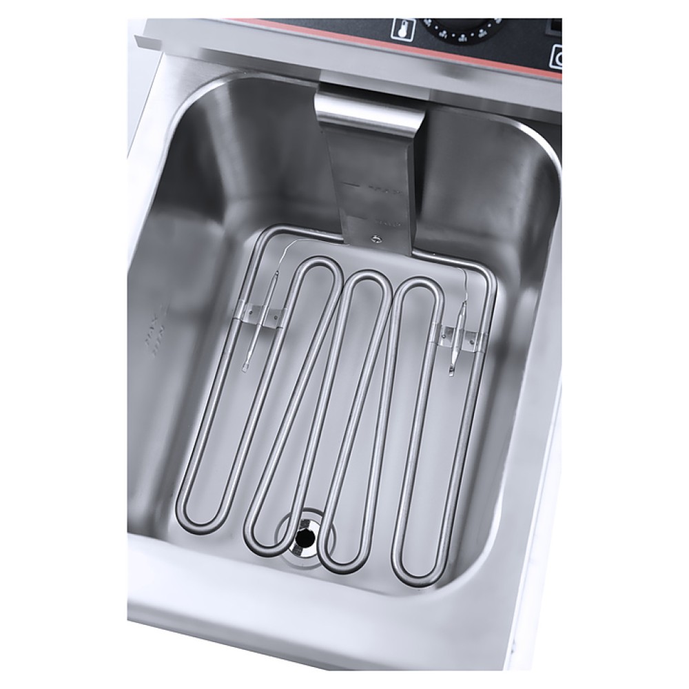 Фритюрница Rosso HEF-12L предназначена для приготовления блюд в большом объёме масла на предприятиях общественного питания и торговли. Модель оснащена термоорегулятором и индикаторами питания и нагрева. Корпус выполнен из нержавеющей стали.